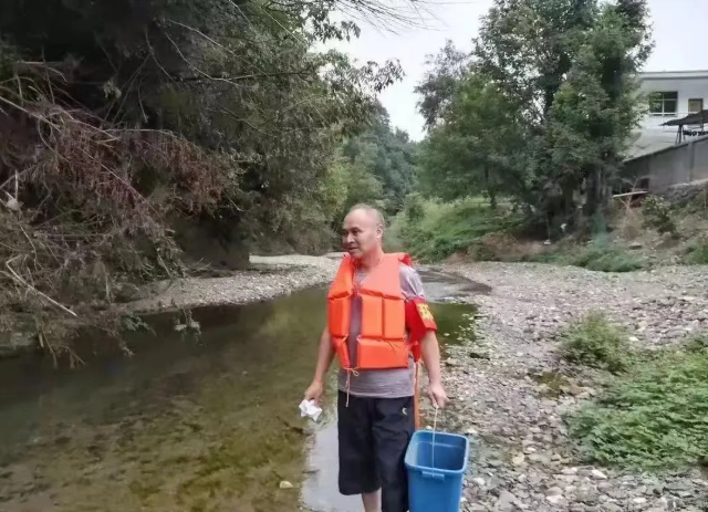 7月29日清晨,在陕西省汉中市宁强县汉源街道汉水源村,村民王开强背着自制的简易工具包,沿着河道开始了十多年如一日的义务巡河。