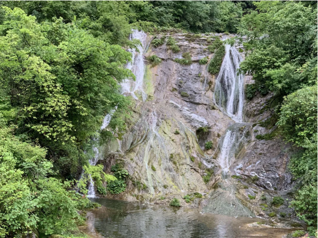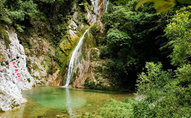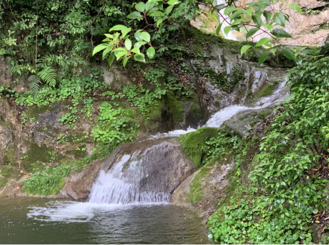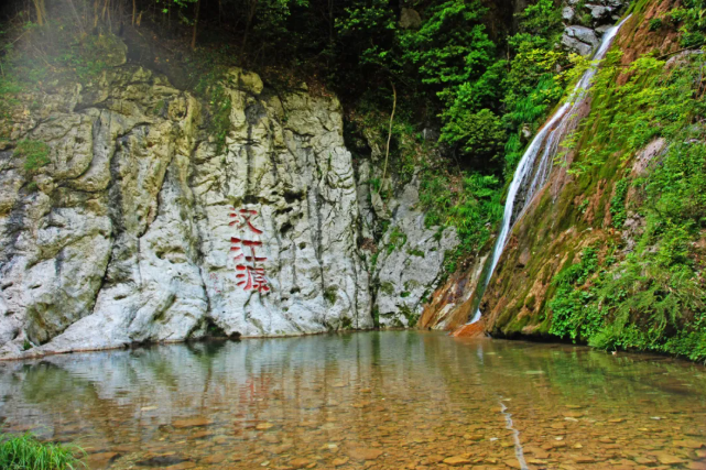 溪水从山崖倾泻而下,汇为平静的潭水。崔慧芬摄.jpg
