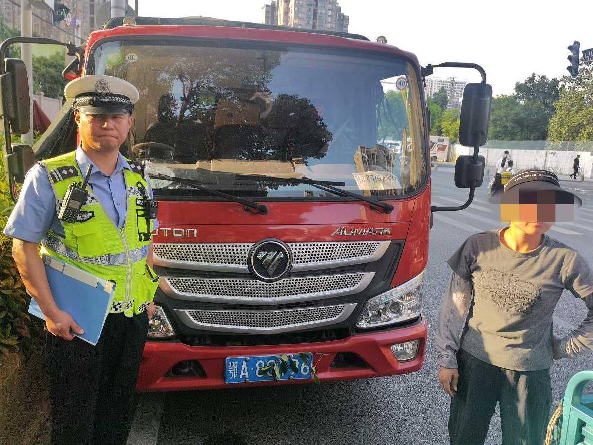 无独有偶。7月29日下午,洪山区公安分局交通管理大队四中队接到群众举报,称辖区野芷湖西路清雅街路口,有一辆大货车用树枝遮挡号牌,请求民警前往查处。接到举报后,民警迅速赶往现场。到达后,民警发现这辆号牌为鄂A8***6的轻型栏板货车违规停在路口,车辆前车牌号码被一根树枝遮挡住,车主冯某正在车后售卖水果。据冯某交代,自己平时开着货车流动兜售水果,曾因违法停车被交警处罚,当天外出售卖时,因担心被电子眼抓拍,于是折来树枝遮挡号牌,企图以此逃避处罚。交警对冯某占道经营影响交通秩序的行为进行普法教育,随后依法对其故意遮挡号牌的违法行为给予处罚。