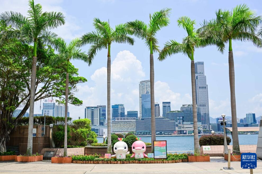 这是8月1日在香港金紫荆广场拍摄的第十五届全国运动会吉祥物。