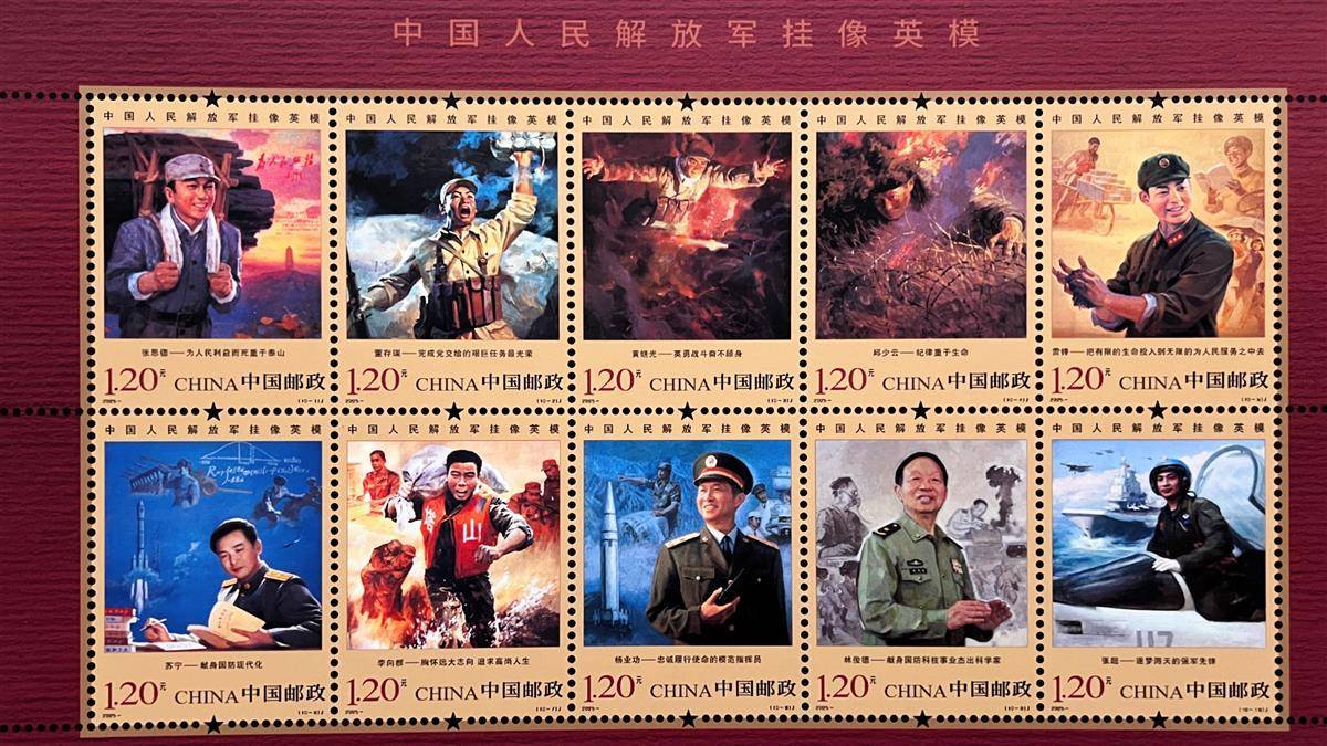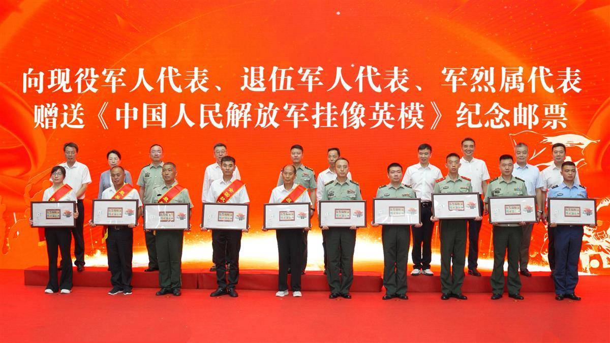 湖北日报讯(记者海冰、通讯员方晖、胡铝、实习生张斓馨)8月1日,《中国人民解放军挂像英模》邮票首发式在湖北孝感市博物馆举办。纪念邮票为一套10枚,计划发行数量450万套,分别为:张思德、董存瑞、黄继光、邱少云、雷锋、苏宁、李向群、杨业功、林俊德、张超。