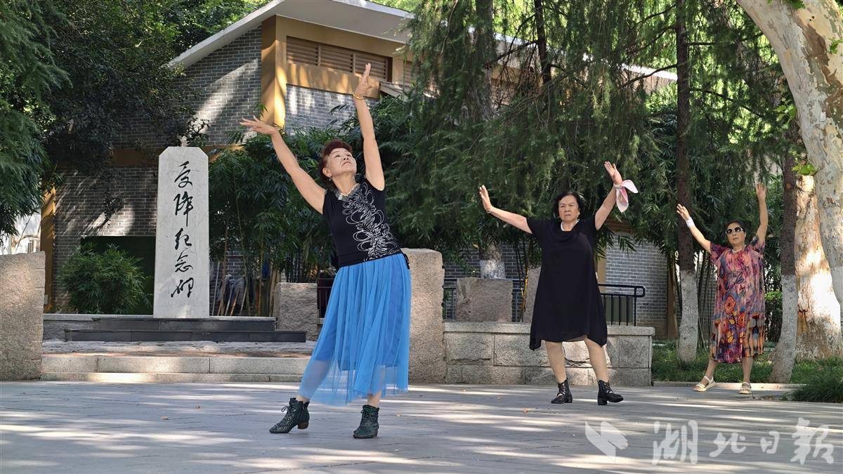 7月31日,武汉市中山公园内铺展出一副市民惬意生活的画卷。园内锻炼场景比比皆是,有人舞动彩带,踏出欢快节拍;有人气沉丹田,演绎太极韵味;有人以水代墨,书写岁月诗章。最令人动容的,是一群老年人在受降堂前翩然起舞。虽舞步不算专业,却满含着对生活的热爱。受降堂历经历史沧桑,此刻静静“凝视”着眼前的其乐融融,更衬出和平的来之不易。(湖北日报全媒记者 陈少哲 摄)