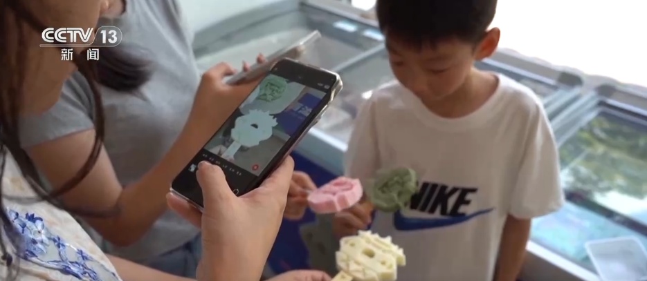 湿热的夏天,谁能抵挡得了一根雪糕呢?来到扬州瘦西湖景区的文创店,冰柜前的人们一边品尝一边拍照,“五亭桥”和“大运”系列的文创雪糕以盲盒的形式销售,想要集齐款式,还要一家人齐上阵,别忘了给孩子们讲讲里面的知识。
