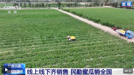 总台记者 马丽:这段时间,每天有近千辆货车在市场交易,单日销售蜜瓜可达3000吨。在高峰期,每天有15000人在市场忙碌,从销售、包装、运输,形成了完整的产业链,借助蜜瓜产业,收成镇也建成了统一良种、统一管护、统一检测的规模化种植基地,保证了民勤蜜瓜的品质。