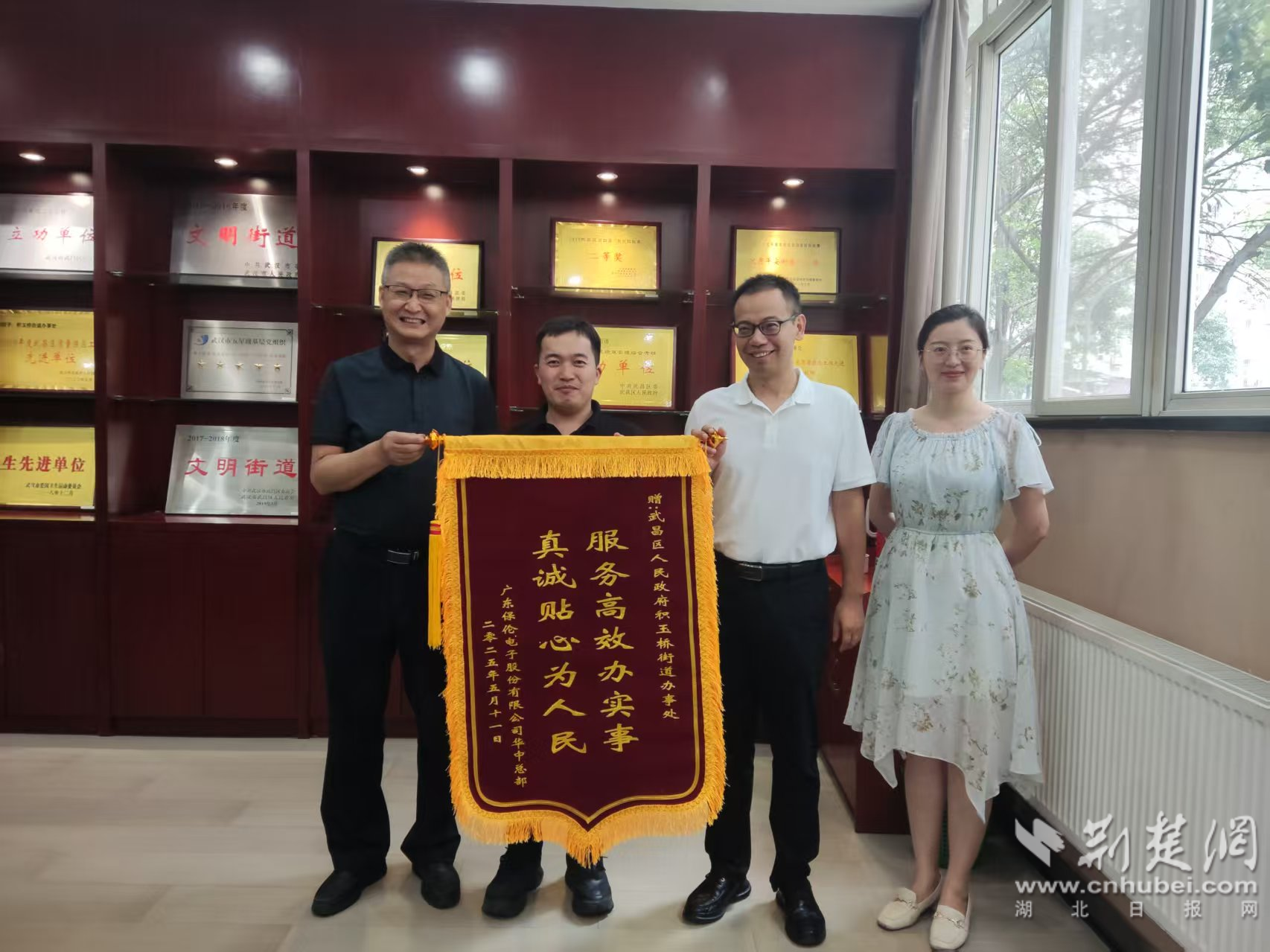 保伦电子华中总部向积玉桥街道赠予锦旗。 通讯员供图