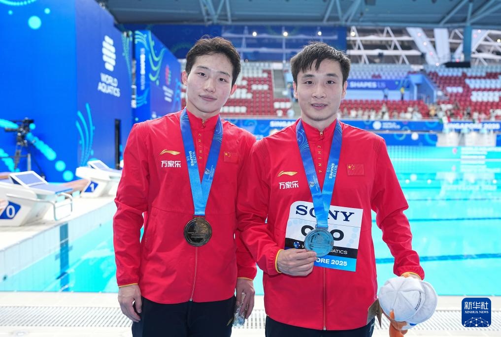 当日,2025年世界游泳锦标赛跳水男子3米板决赛在新加坡举行。