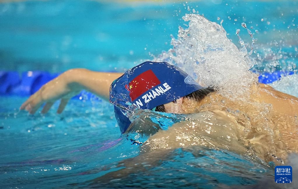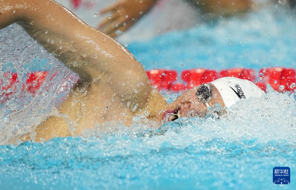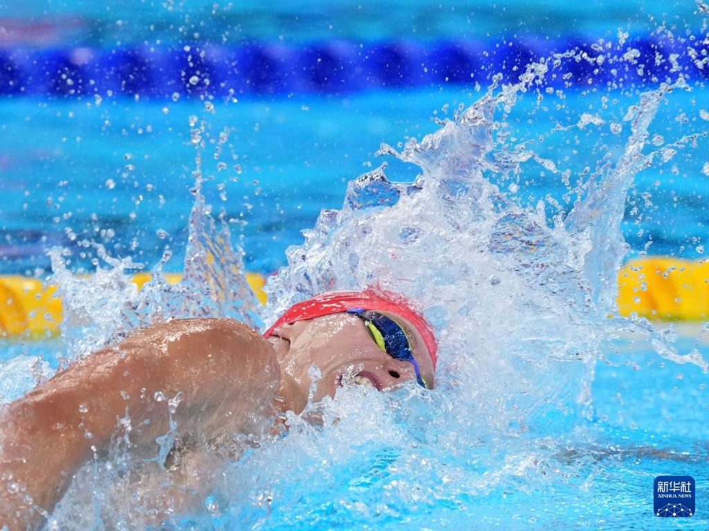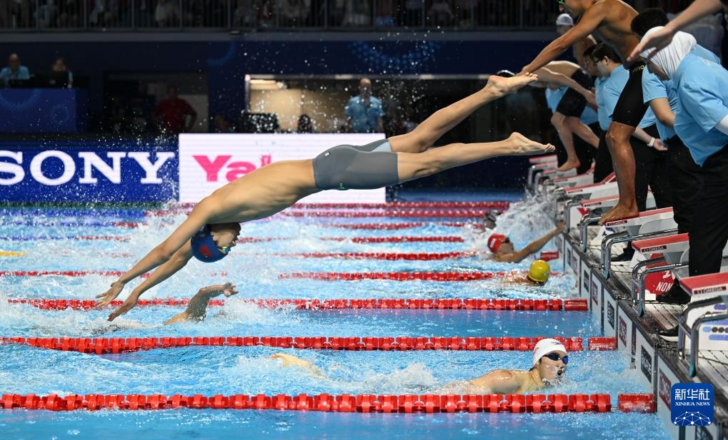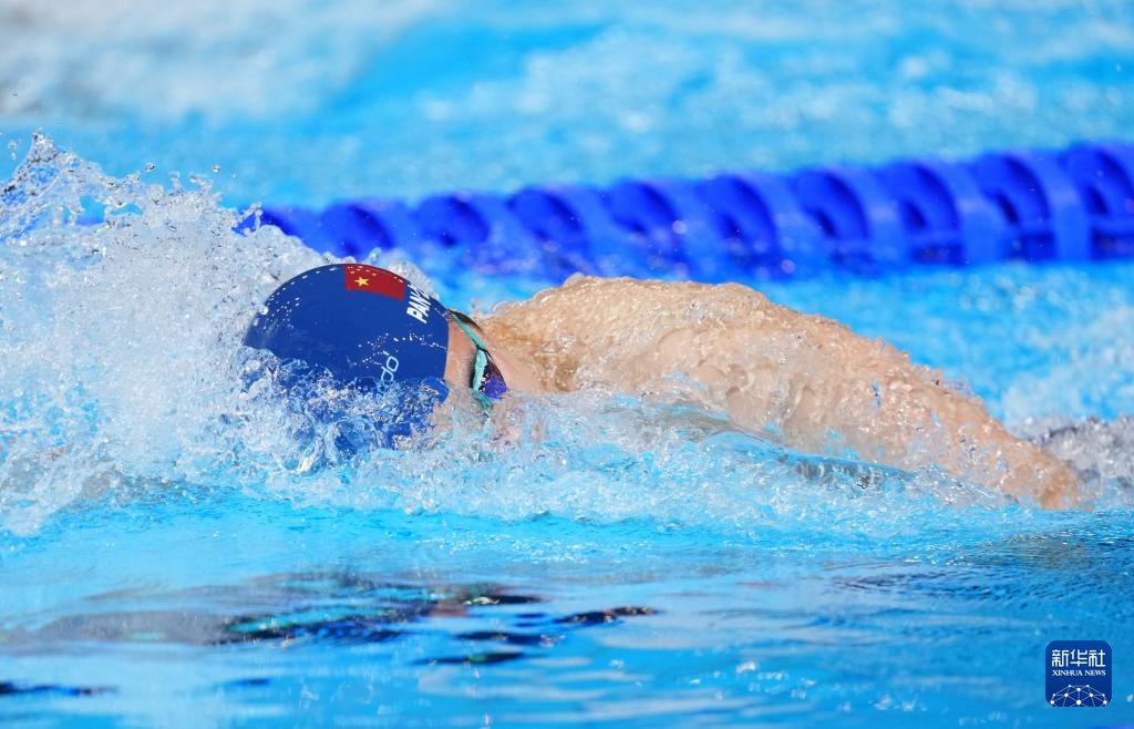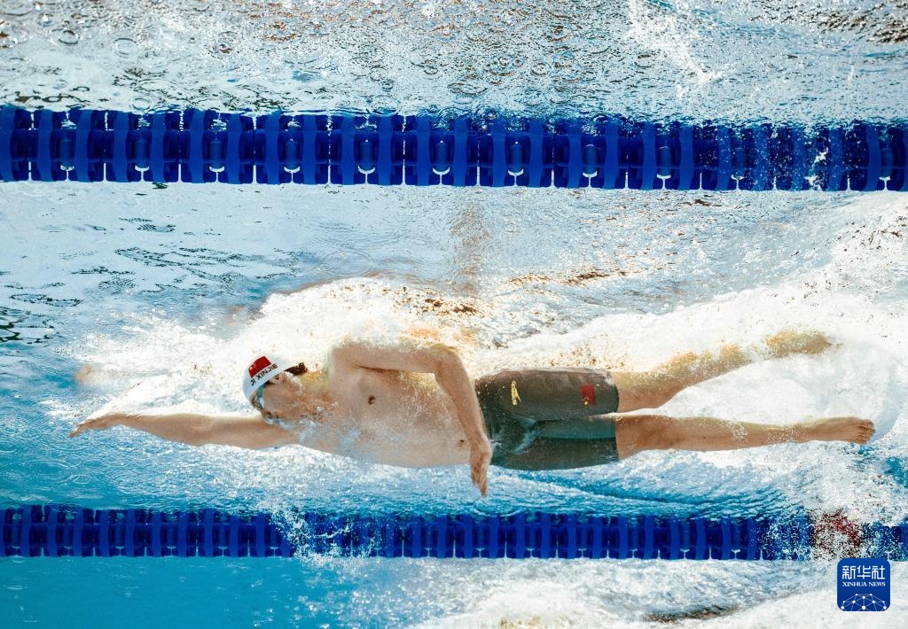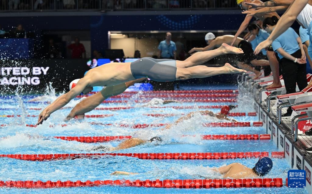 8月1日,中国队选手潘展乐在比赛中。最终,中国队获得亚军。