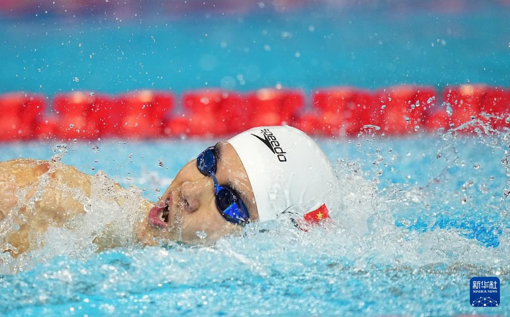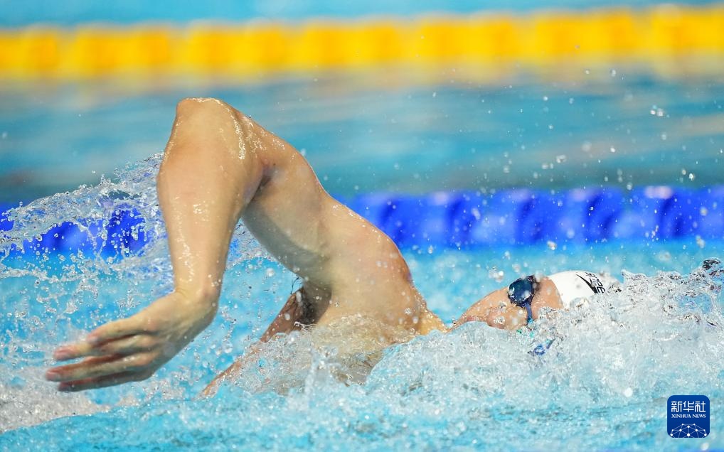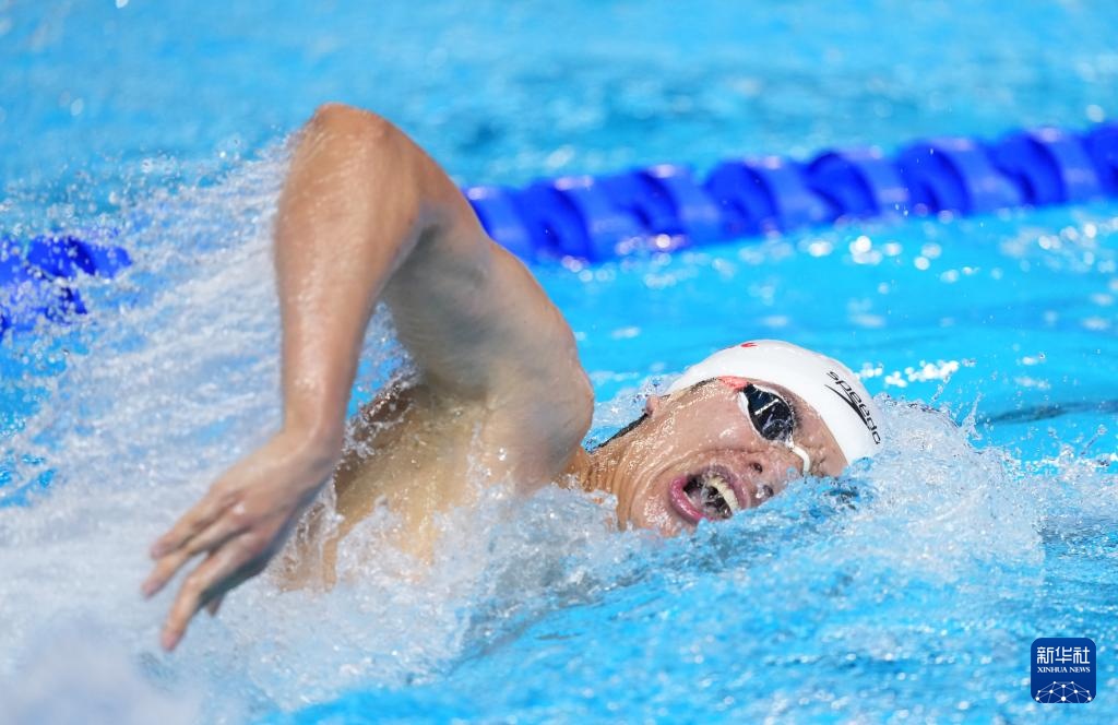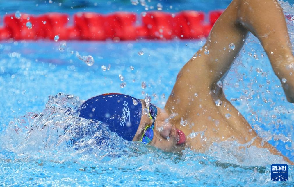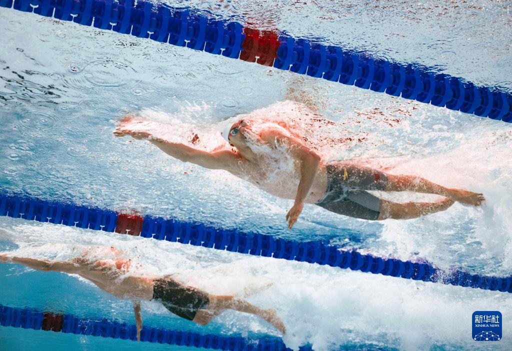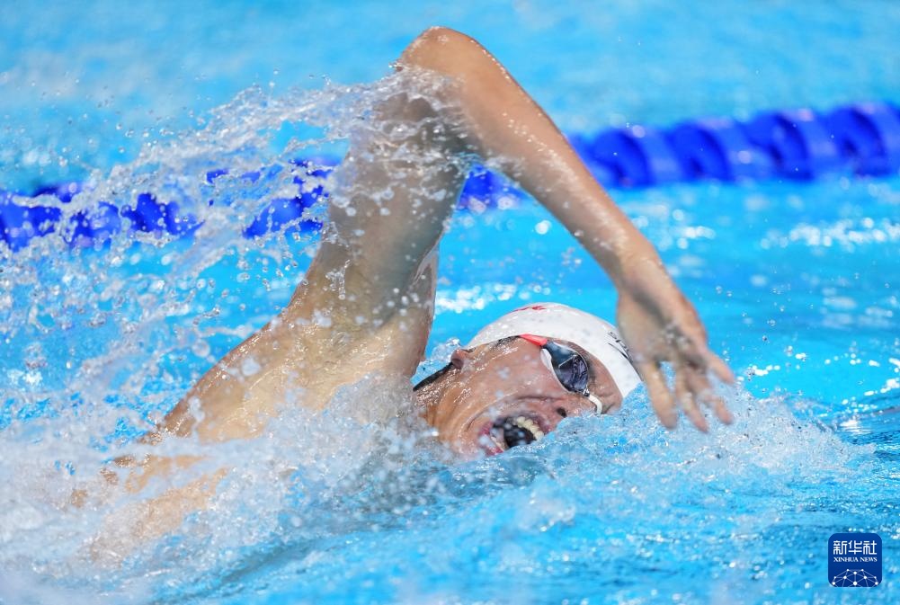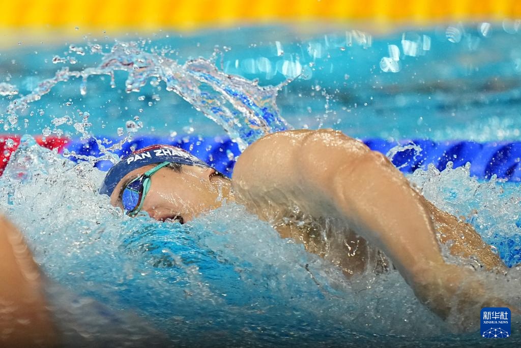 8月1日,中国队选手潘展乐在比赛中。最终,中国队获得亚军。