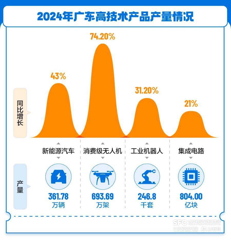 从数据看,上半年广东高技术产品的产量都实现了快速增长,其中储能用锂离子电池、工业机器人、服务机器人、民用无人机产品产量分别增长42.2%、34.0%、23.0%、58.2%。