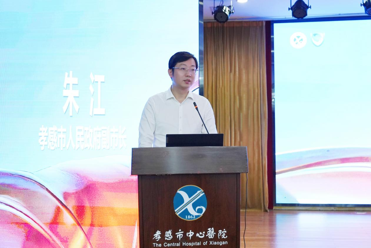孝感市人民政府副市长朱江,市人民政府副秘书长蒋伟,孝感市卫生健康委员会党组书记、主任夏军,清华长庚医院长聘教授、医疗总监李国新,武汉协和医院陶凯雄教授、汤绍涛教授,武汉同济医院曾晓勇教授,武汉中南医院张中林教授,孝感市中心医院党委书记吴克松等出席活动。各医联体单位领导及孝感市中心医院全体领导班子成员、各科室代表等共同参与,见证孝感医疗领域这一重要时刻。大会开幕式由孝感市中心医院院长谢志斌主持。