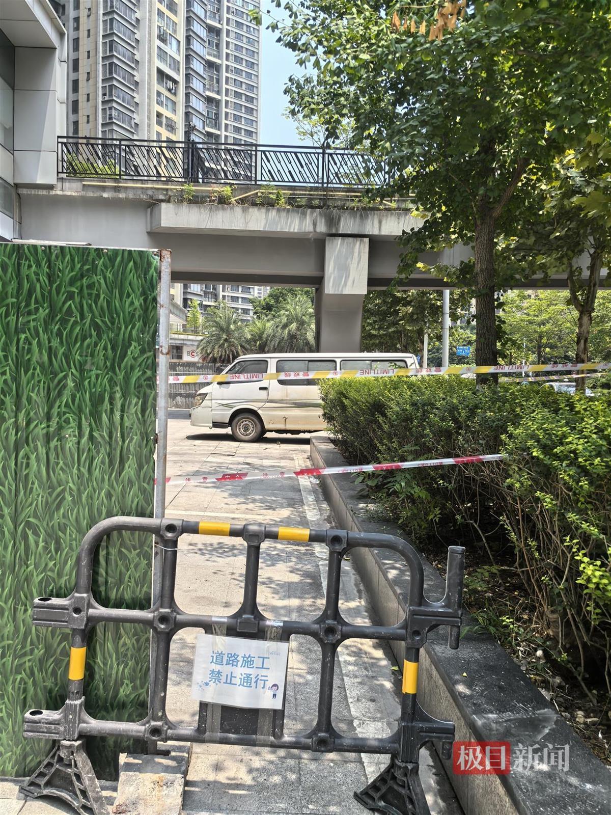 极目新闻记者在现场注意到,6栋是一栋高层居民楼,6栋和马路对面小区之间有一座天桥连接,这个天桥的出入口也被封闭,并拉着警戒线。