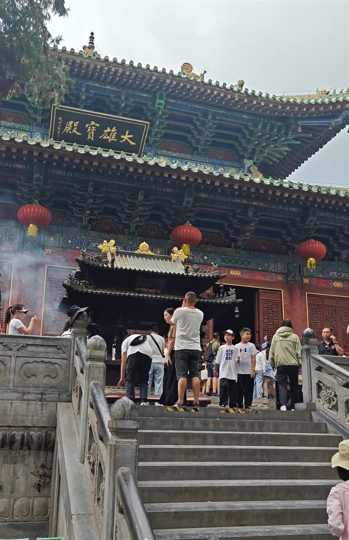 游客们正在大雄宝殿前进香