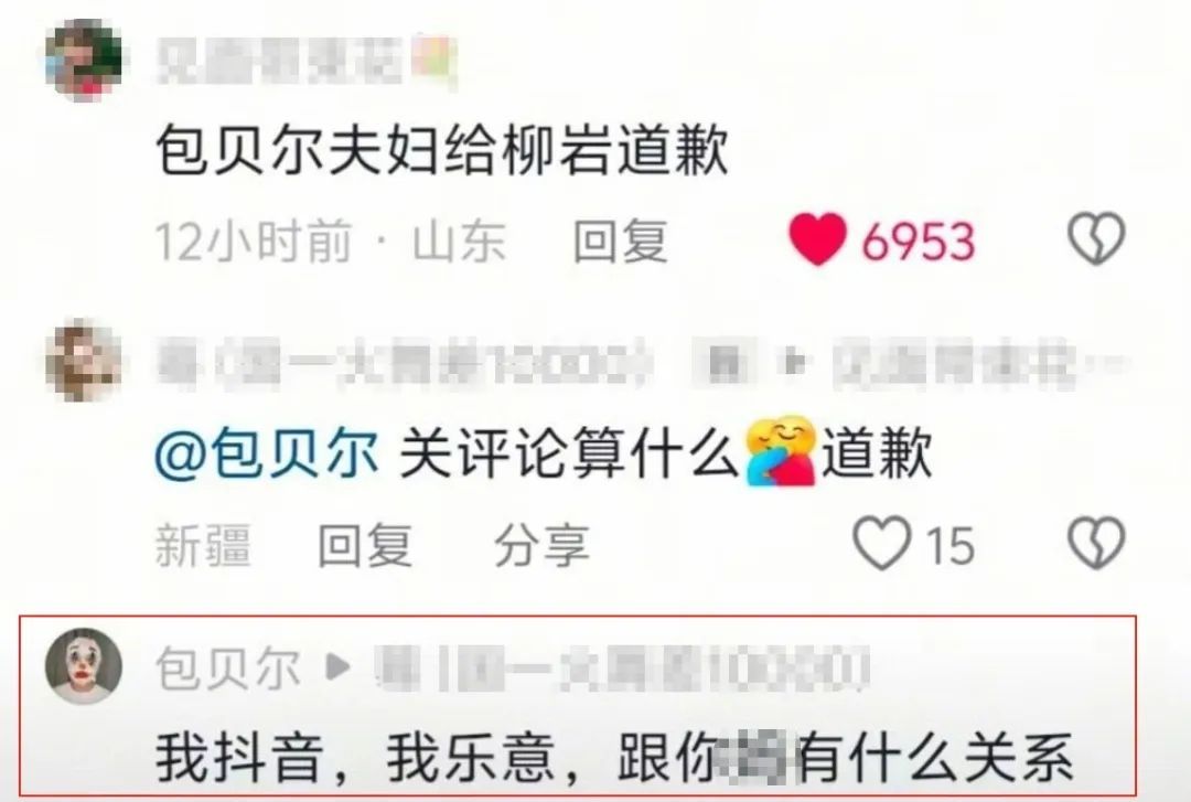 近日,有网友在包贝尔的抖音评论区留言“包贝尔夫妇给柳岩道歉”,被包贝尔爆粗口怒怼,随后将评论删除。