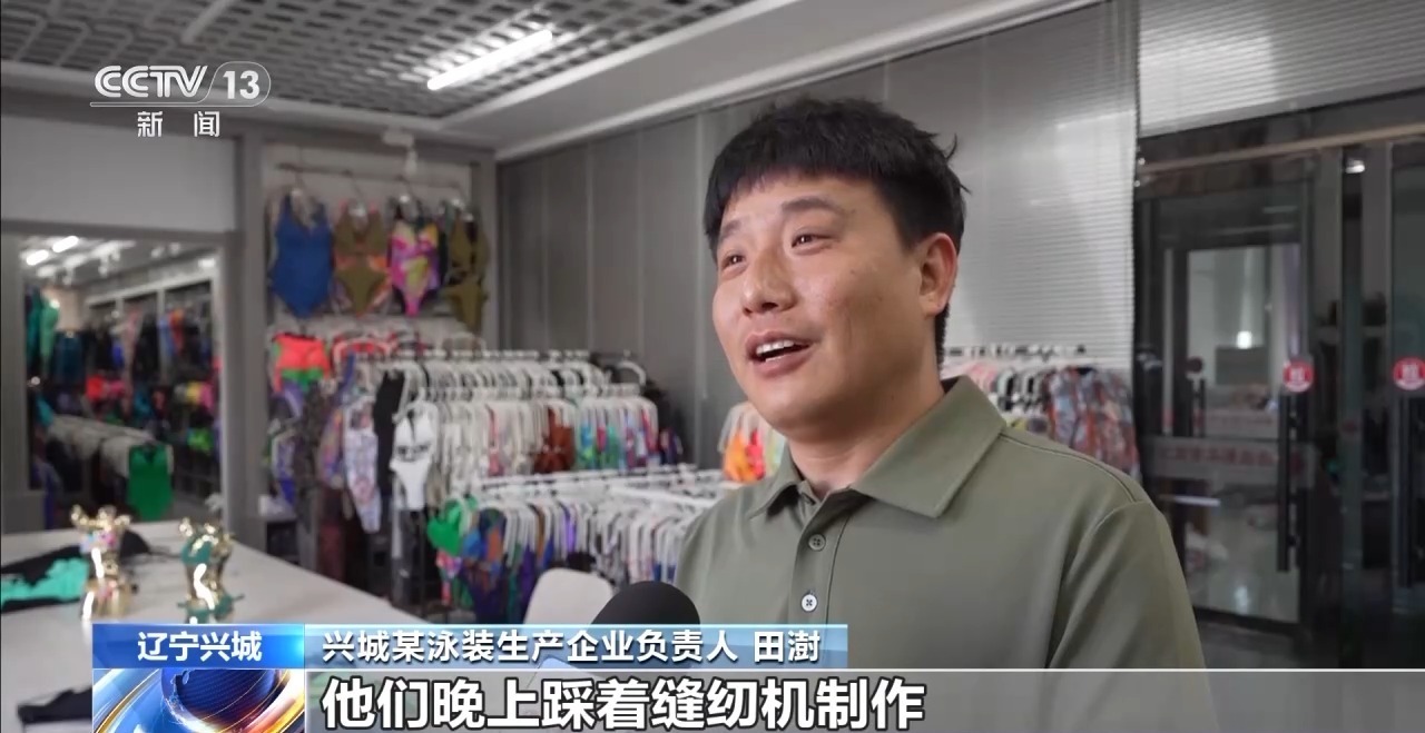 兴城某泳装生产企业负责人 陈云鹏:为了让淡季不淡,我们也想了很多方法,比如说直播,包括一些水上乐园的一些互动。未来的话,第一品牌化,第二就是把我们的泳衣,我们可能要和其他一些企业做联名,做更多的场景使用,做更多的生产体量。
