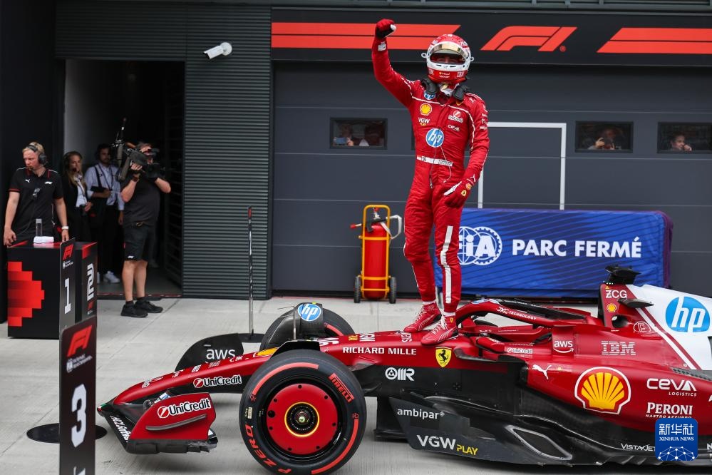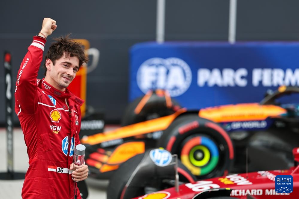 8月2日,获得杆位的法拉利车队摩纳哥车手勒克莱尔在排位赛后庆祝。