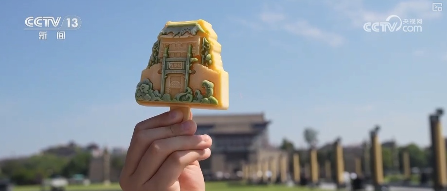 在这里,以标志性古建为灵感的文创雪糕,凭借不同口味和造型,吸引了众多游客前来拍照打卡,在炎炎夏日成为消暑解渴的“清凉伴侣”。