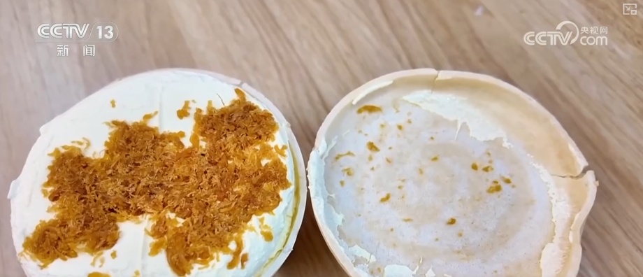 这款“冰馍馍”文创冰淇淋,外形高度还原了陕西名吃肉夹馍,内馅创新融合了咸甜口味,而包装则是本地农民画师创作的,可以说从里到外都透着浓浓的陕西味儿。在西安大唐不夜城景区,不少游客穿着古装,手拿“冰馍馍”,边吃边拍照。