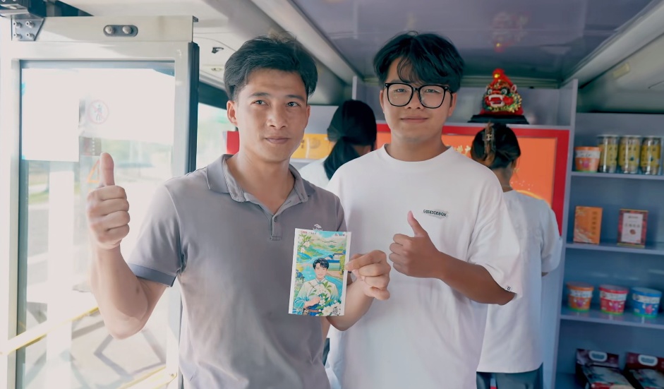 行进中,总台大巴化身为广东农特产品展示平台,搭建“百千万工程”特色农产品展销平台。此外,结合AI技术设计互动玩法,化身为移动的“时光照相馆”。通过AI技术选择奋斗场景,拍摄个人定制“时光照片”,展现建设广东“百千万工程”的奋进姿态。