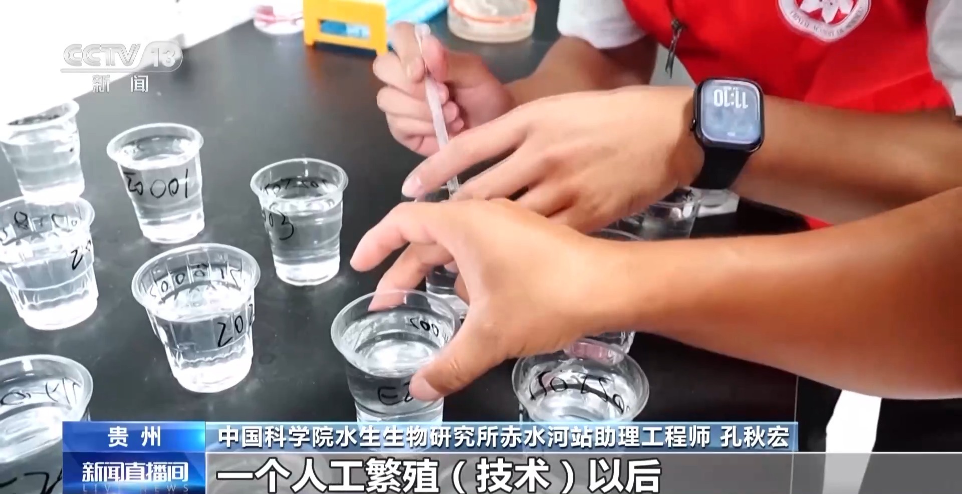 中国科学院水生生物研究所赤水河站助理工程师 孔秋宏:我们突破了这些珍稀特有鱼类的人工繁殖技术以后,批量性地生产繁育一些鱼类。然后针对它野外种群比较少的一些珍稀特有鱼类,进行增殖放流,达到恢复野外种群重建的目的,更好地保护这些珍稀特有鱼类。