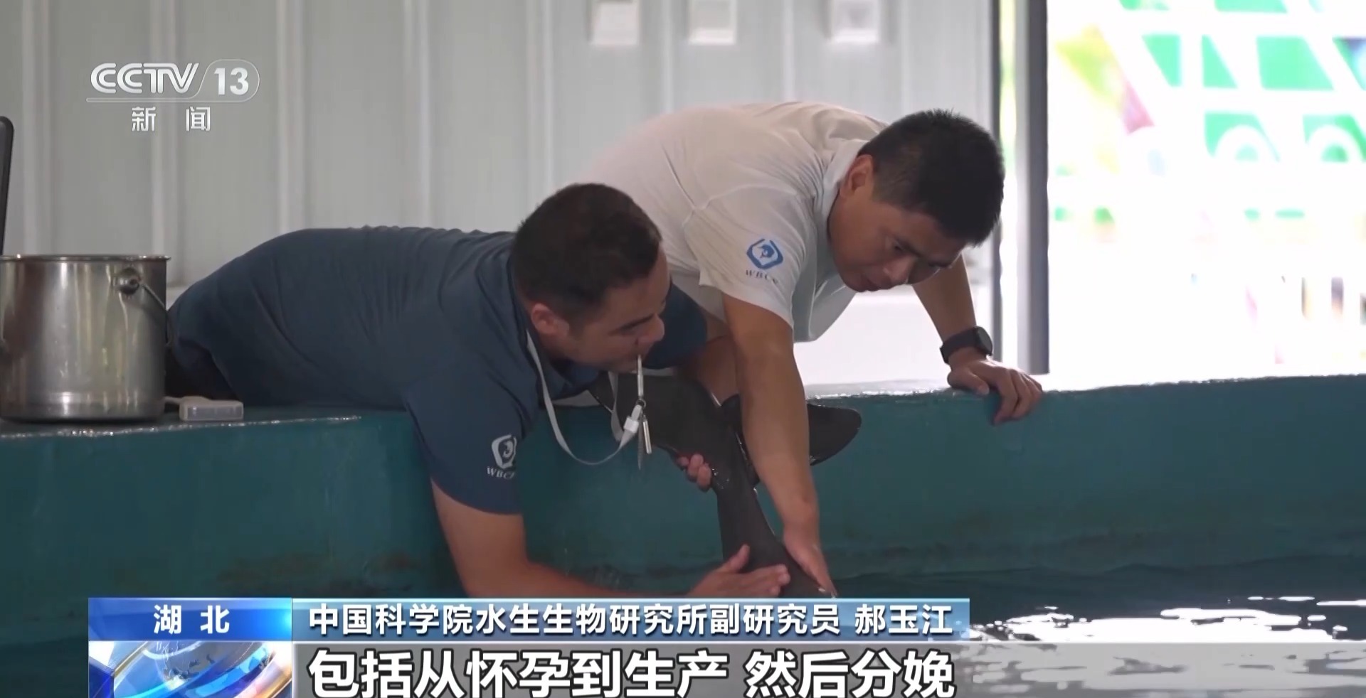 中国科学院水生生物研究所副研究员 郝玉江:说明江豚在人工环境下,整个的自然繁殖过程是没有问题的,包括从怀孕到生产,然后分娩,一直到后期的幼豚的发育,整个过程都已经全部完成。