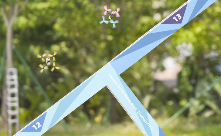 ↑这是2023年中国无人机竞速公开赛(海南自贸港站)比赛现场(2023年7月15日摄)。
