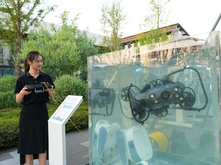 ↑7月30日,20余款前沿科技产品亮相成都世运村,它们将在赛场、世运村大显身手以满满的"成都智慧"为世运会注入科技活力。