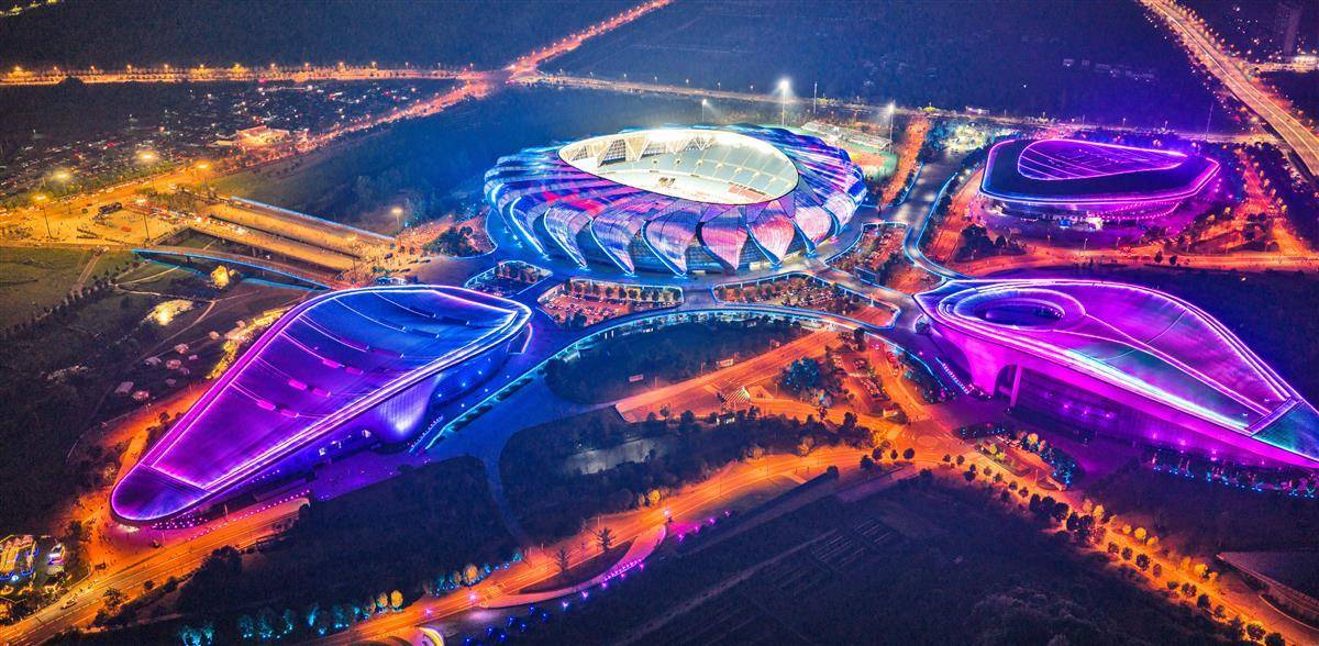 8月3日,当夜幕降临,宜昌奥体中心在璀璨灯光中绽放出 “百合花” 的绰约风姿 ,以体育场为 “花蕊”、四座场馆为 “花瓣”,在夜空中勾勒出一幅现代与自然交融的画卷。当晚,随着刀郎 “山歌响起的地方” 巡回演唱会压轴场落幕,奥体中心内外的灯光与音乐交织成一场震撼视听的文化盛宴。(湖北日报全媒记者 刘曙松 摄)