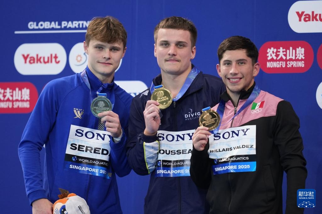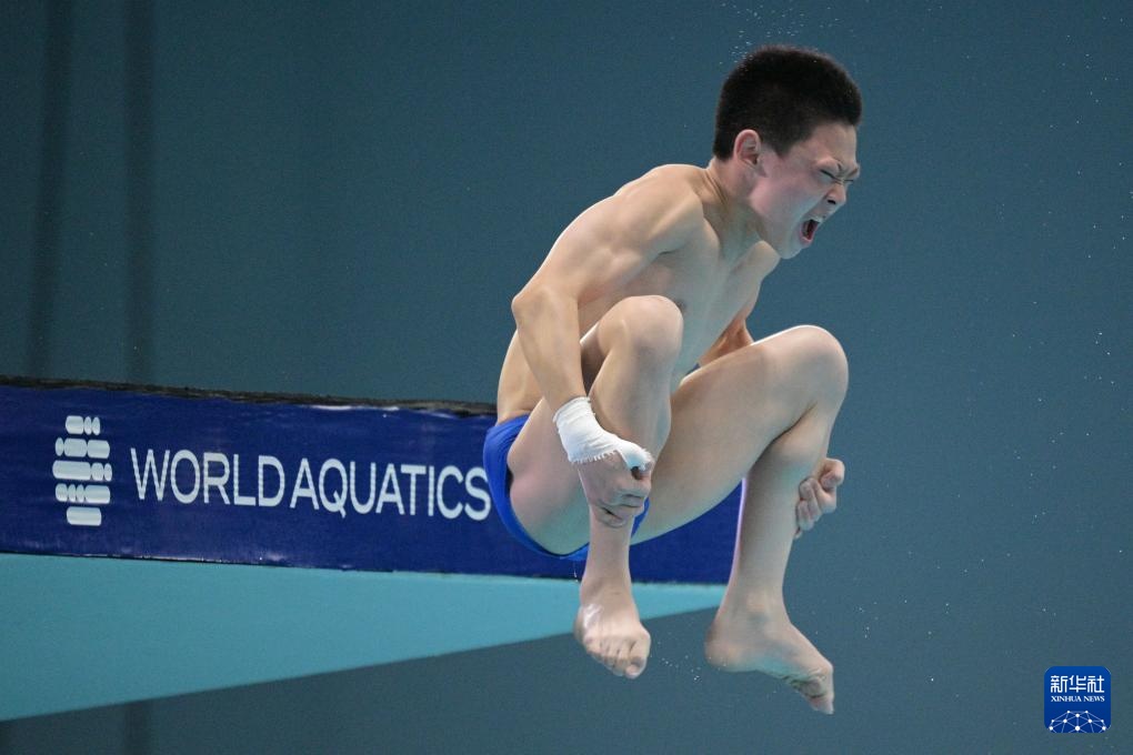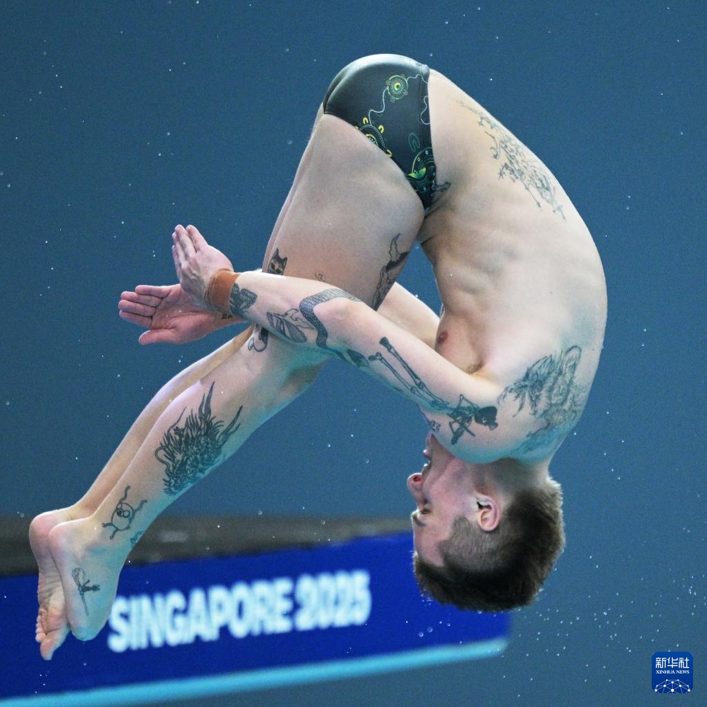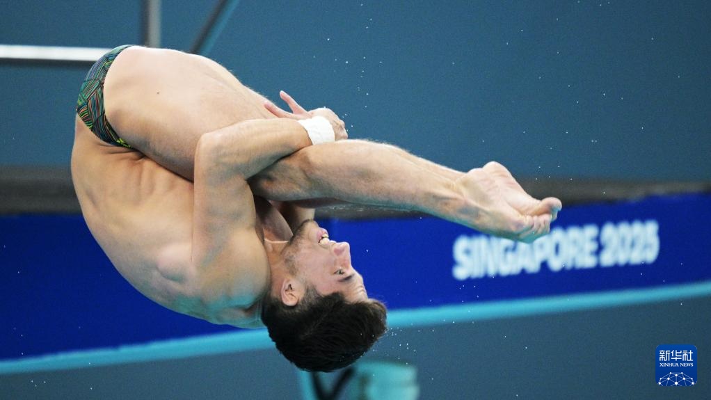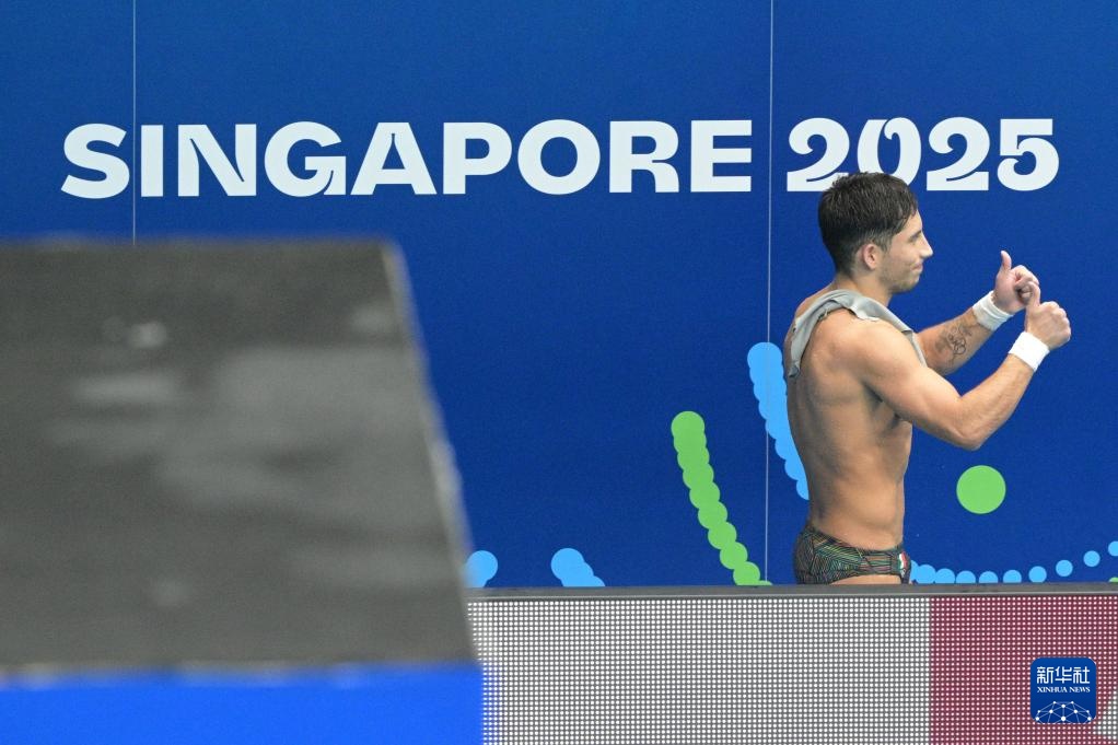 当日,2025年世界游泳锦标赛跳水男子10米台决赛在新加坡举行。