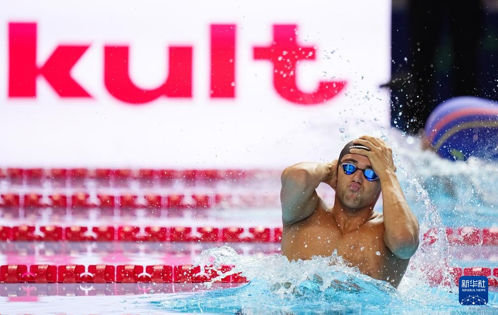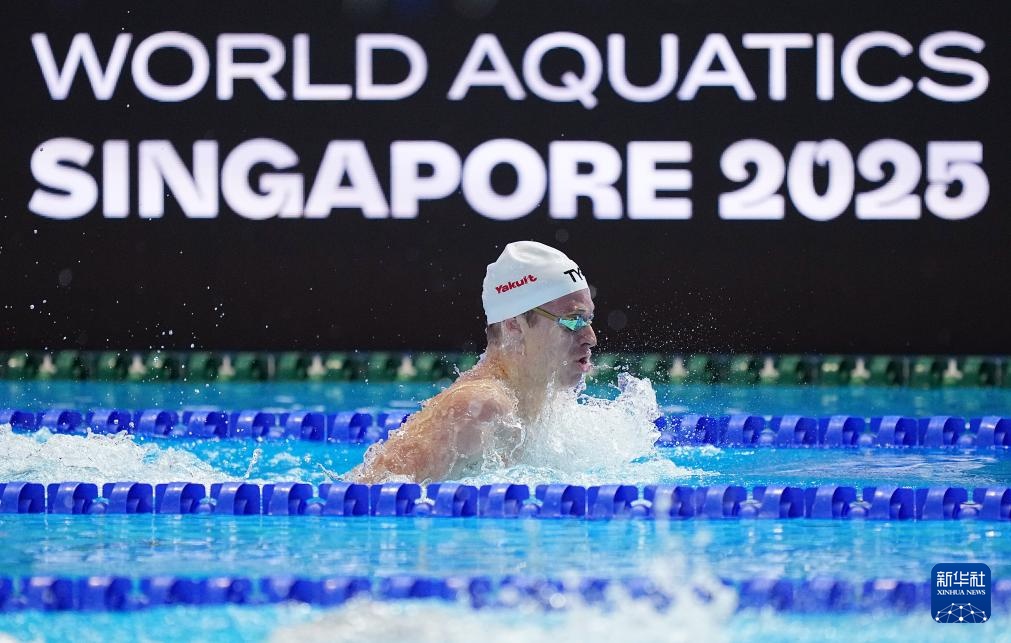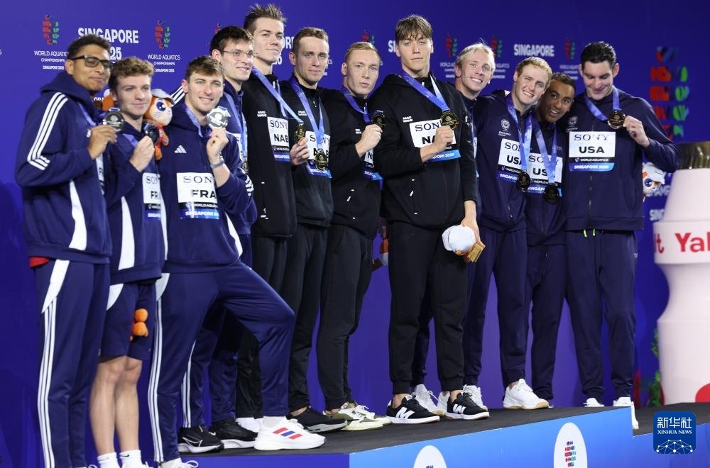当日,2025年世界游泳锦标赛游泳男子4X100米混合泳接力决赛在新加坡举行。