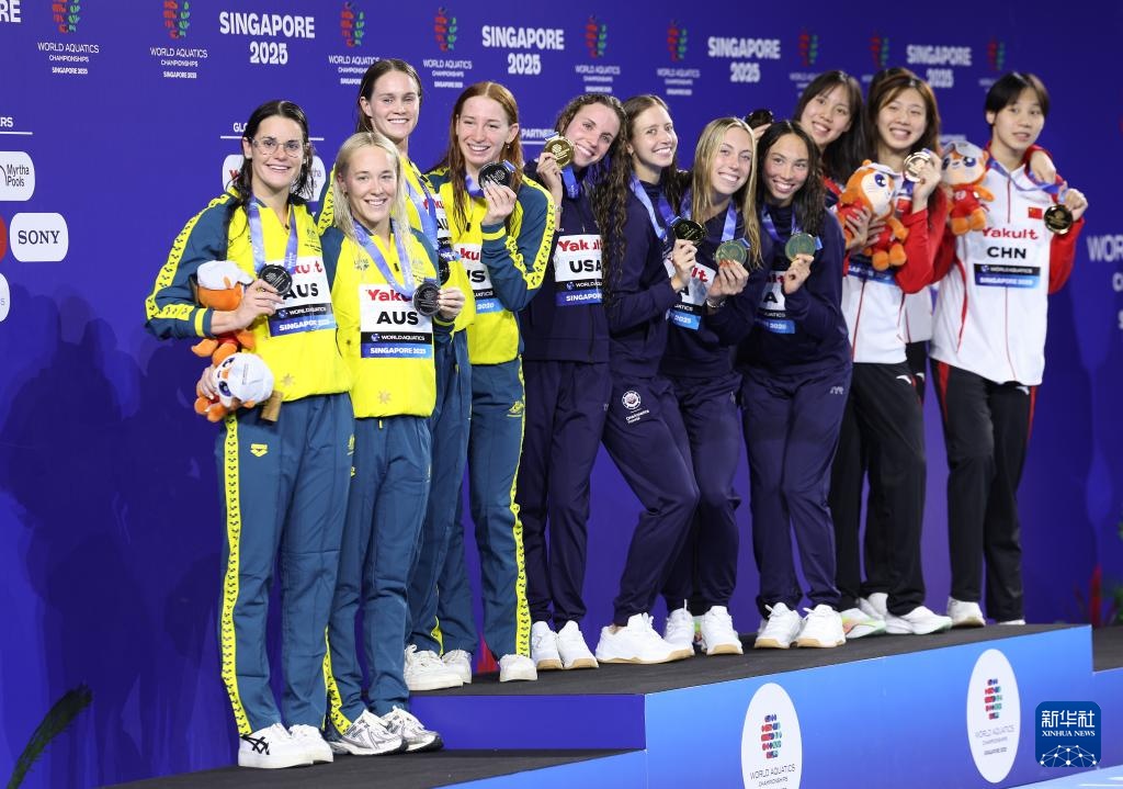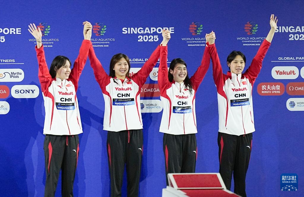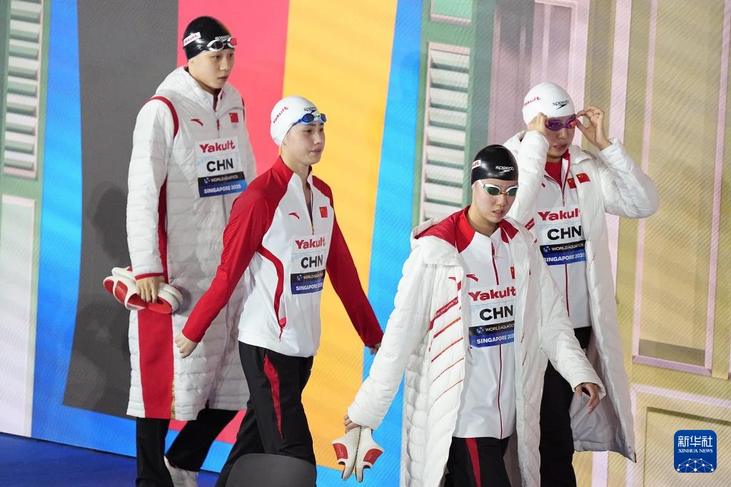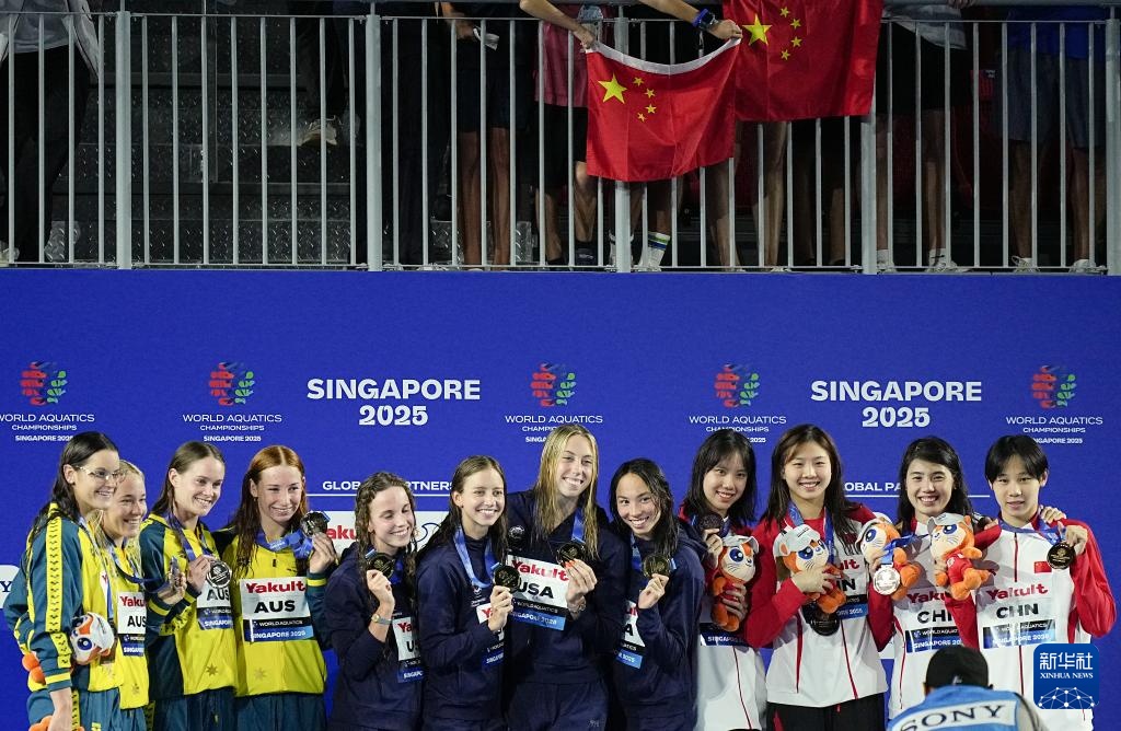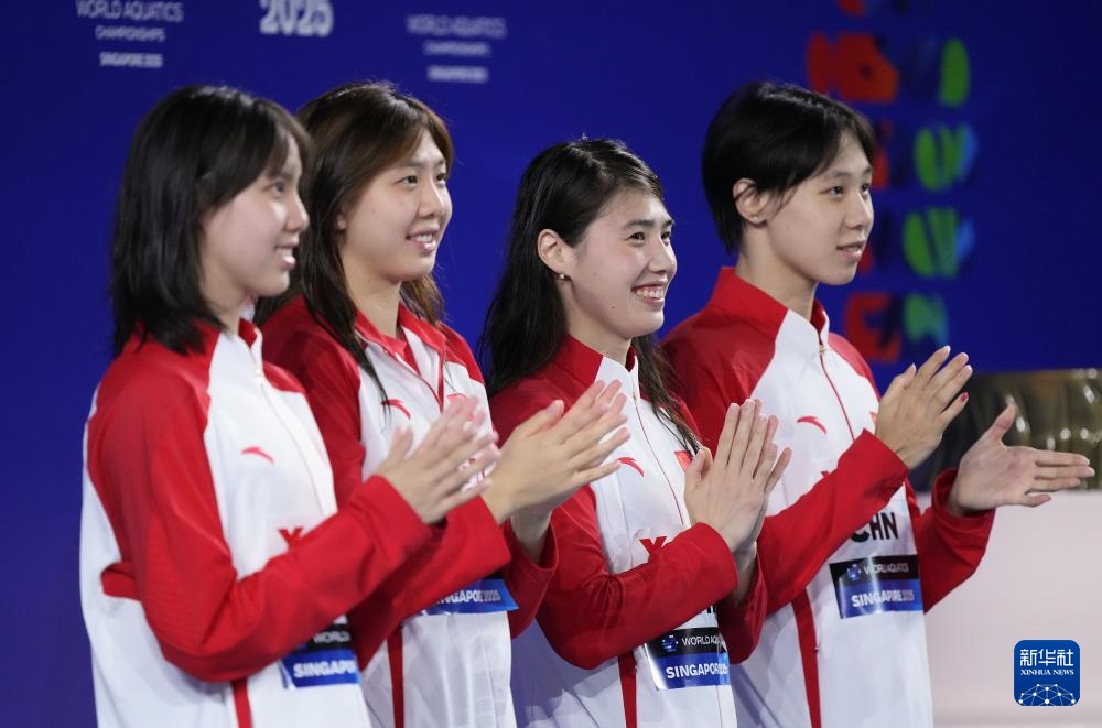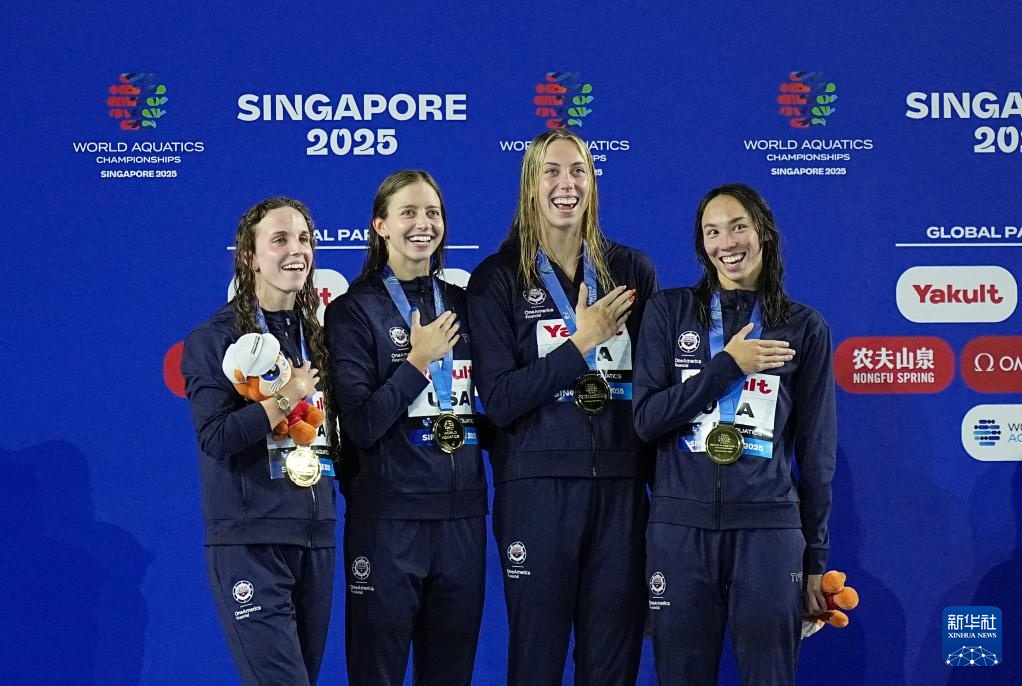 当日,2025年世界游泳锦标赛游泳女子4X100米混合泳接力决赛在新加坡举行。