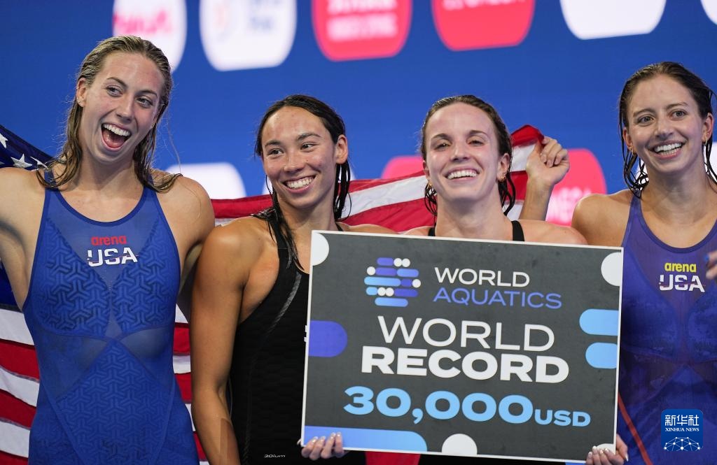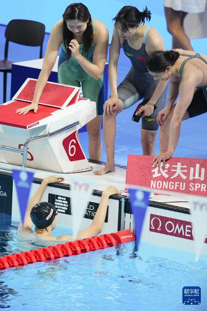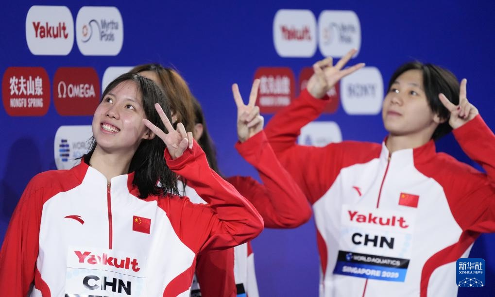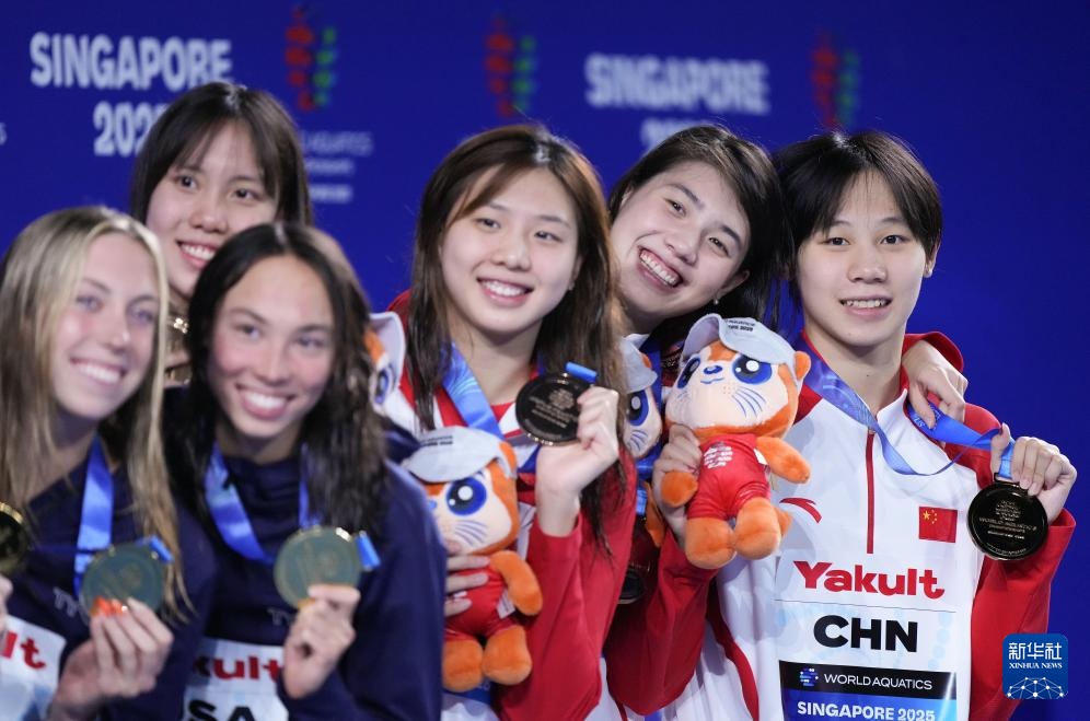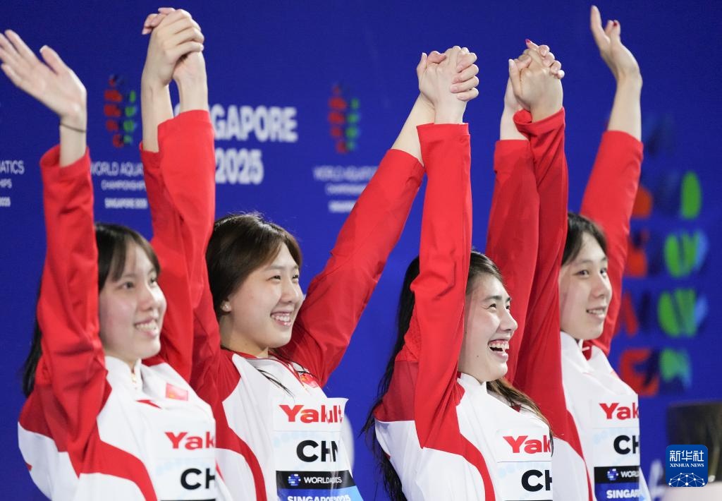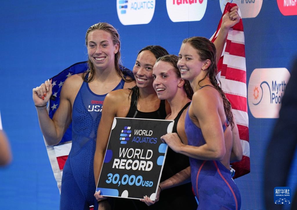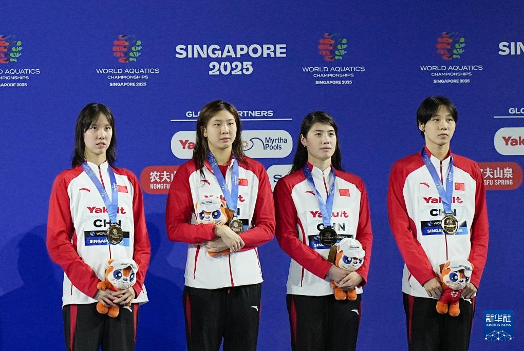 当日,2025年世界游泳锦标赛游泳女子4X100米混合泳接力决赛在新加坡举行。