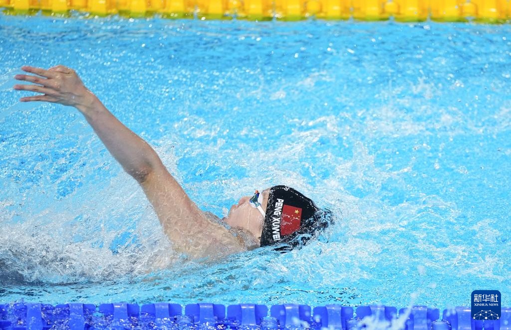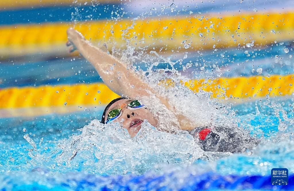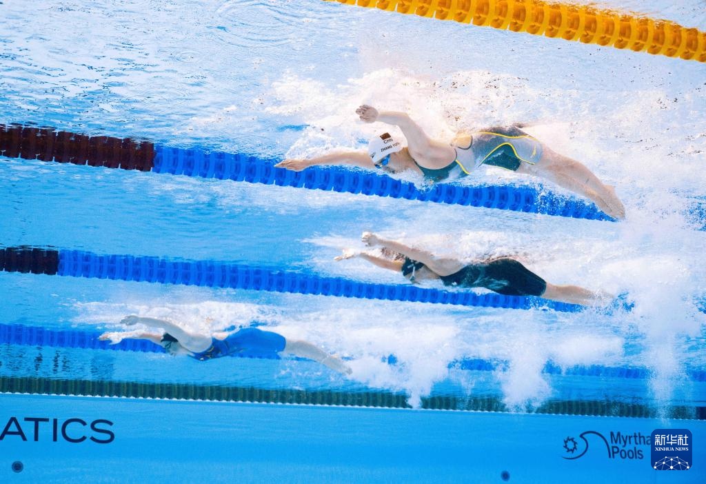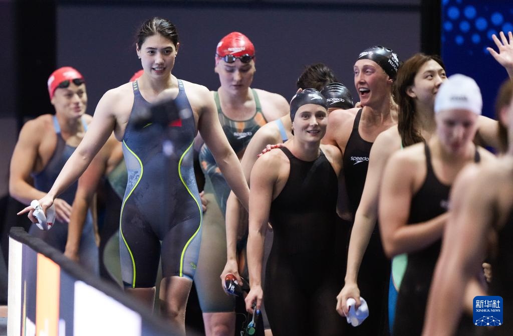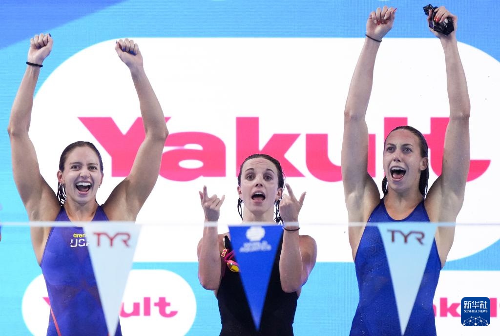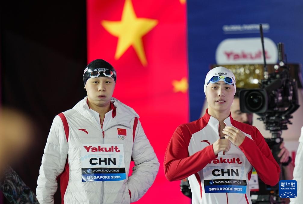 当日,2025年世界游泳锦标赛游泳女子4X100米混合泳接力决赛在新加坡举行。