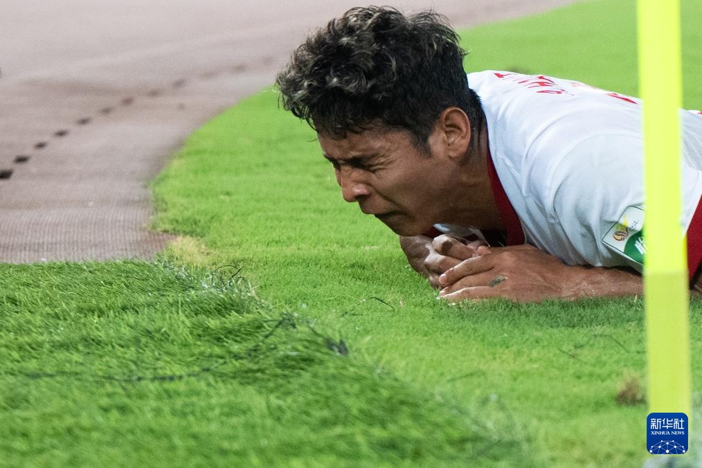 8月3日,长春亚泰队球员阿不都海米提·阿不都格尼在比赛中摔倒。