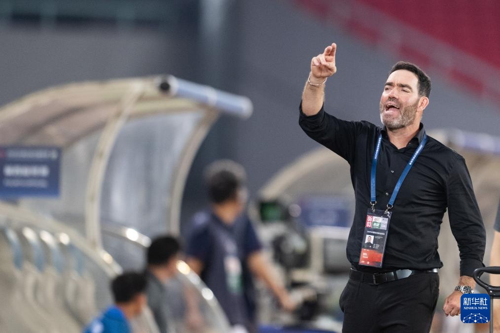 8月3日,长春亚泰队主教练苏亚雷斯在场边指挥。