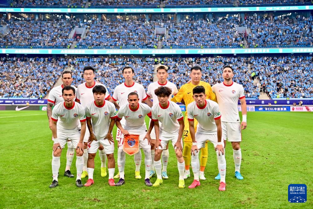 8月3日,青岛海牛队首发球员在赛前合影留念。