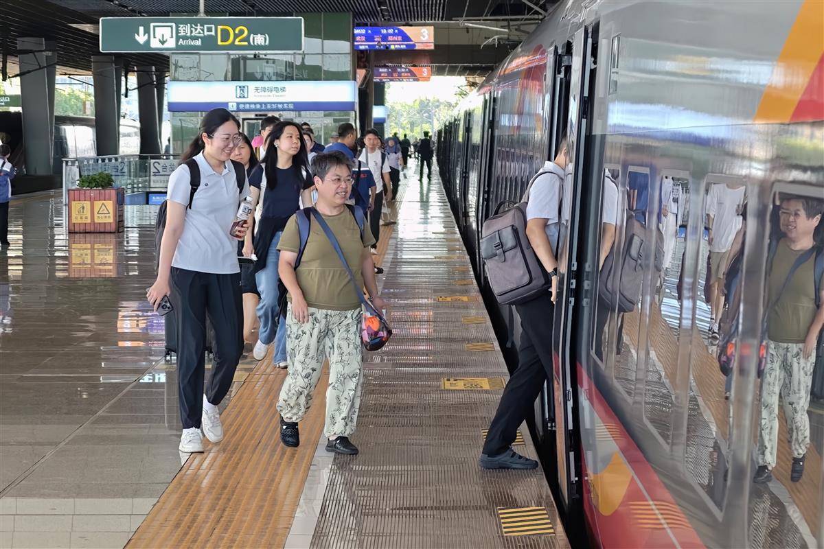 武汉站内,旅客愉快出行。
