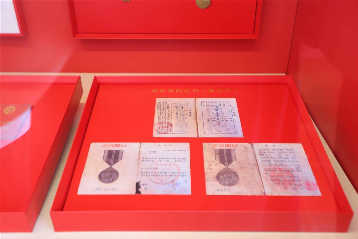 在巡展现场展出的一张泛黄的《立功证明书》上,清晰地记载着谭珍祥立大功的经历:固守中隶谷阵地战中,英勇顽强,和同志一起打退敌人八百余人的八次冲锋。阵地上仅剩二人仍机动灵活,收集手榴弹,坚持战斗,固守了阵地,立大功一次。