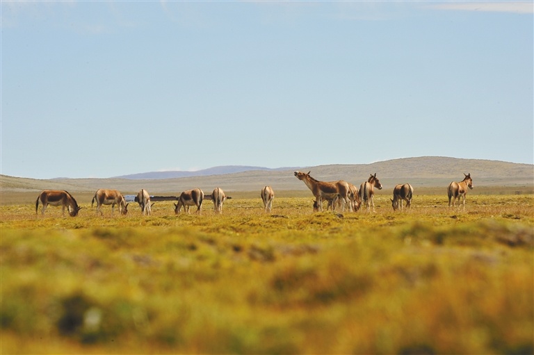 三江源国家公园唐北片区内的藏野驴。记者 赵书彬 摄
