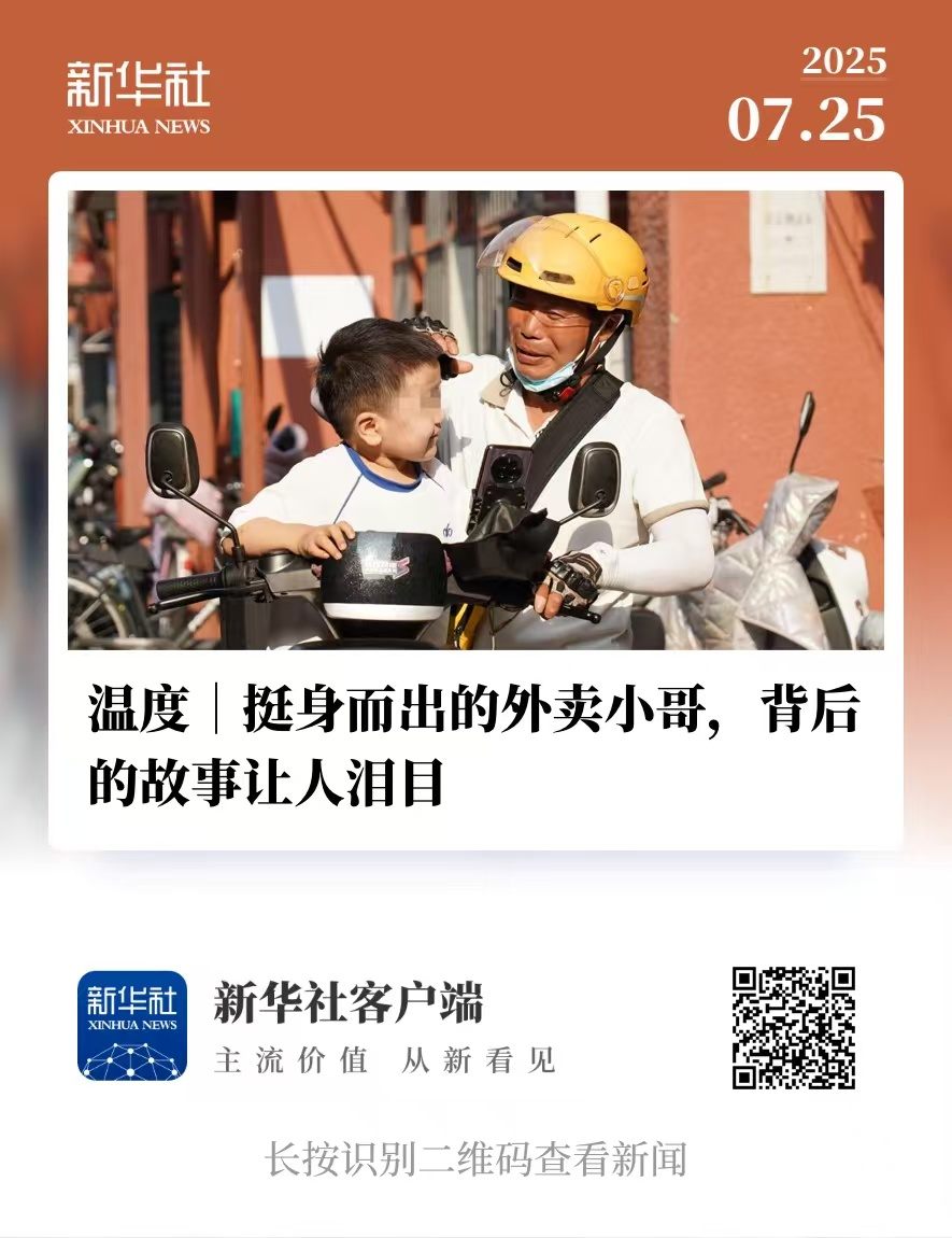 新华社:《温度丨挺身而出的外卖小哥,背后的故事让人泪目》