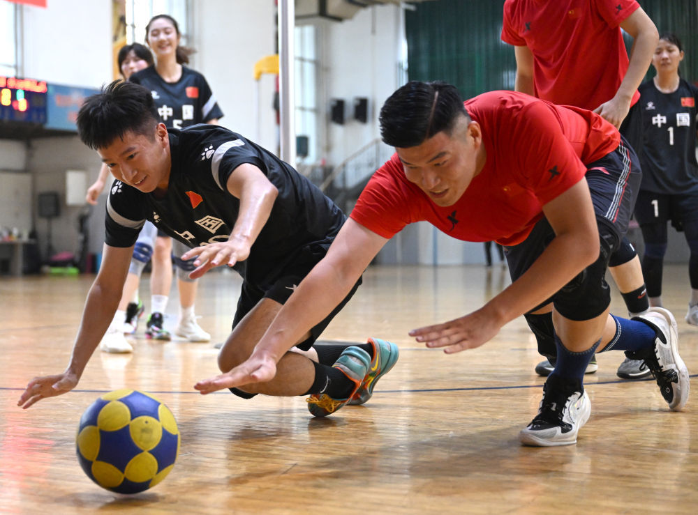 7月10日,中国国家荷球队球员在郑州大学集训时进行分组对抗练习。新华社记者 李嘉南 摄