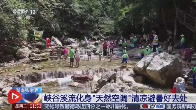 近日,全国多地持续高温,湖南张家界凭借宜人的温度和独特的自然环境、峡谷溪流化身“天然空调”,成为了游客们避暑纳凉的好去处。