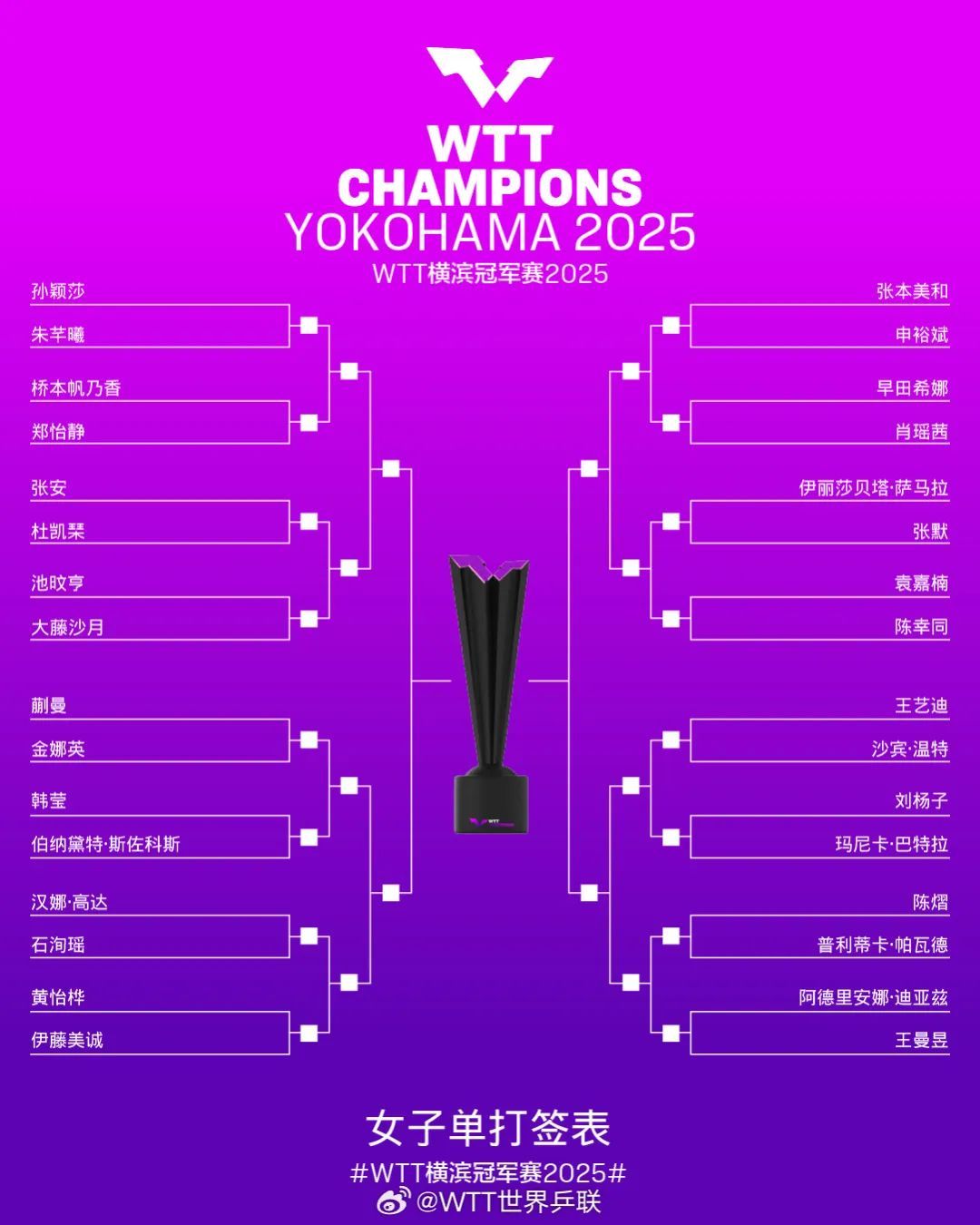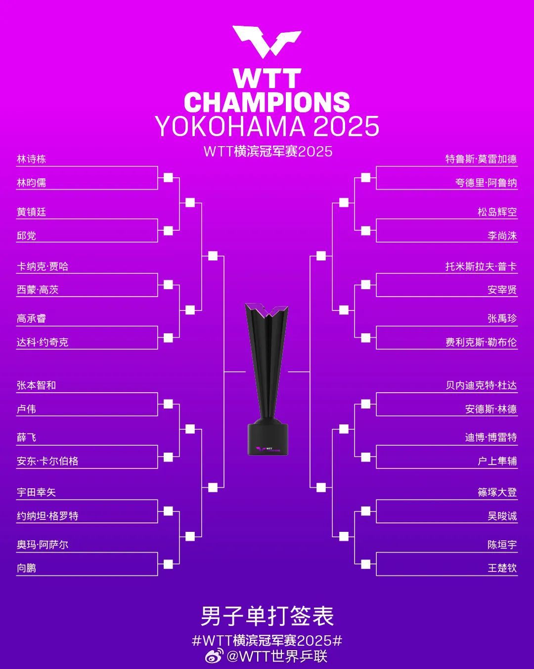 8月5日下午,WTT横滨冠军赛抽签结果公布: