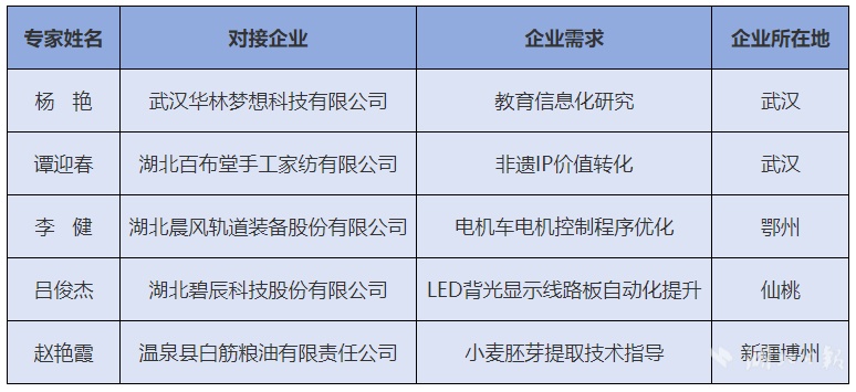 在2025年“院士专家企业行”项目中,该校杨艳、谭迎春、李健、吕俊杰、赵艳霞5位教师脱颖而出。专家团队服务地域辐射武汉、鄂州、仙桃乃至新疆博州,覆盖软件开发、非遗文化传播、电气自动化等前沿领域,将为企业提供为期一年的深度技术诊断与联合攻关。其中,赵艳霞教授将采用线上线下结合模式,为新疆博州温泉县白筋粮油公司提供小麦胚芽提取技术指导,成为学校深化产教融合、服务跨区域协调发展的生动实践。