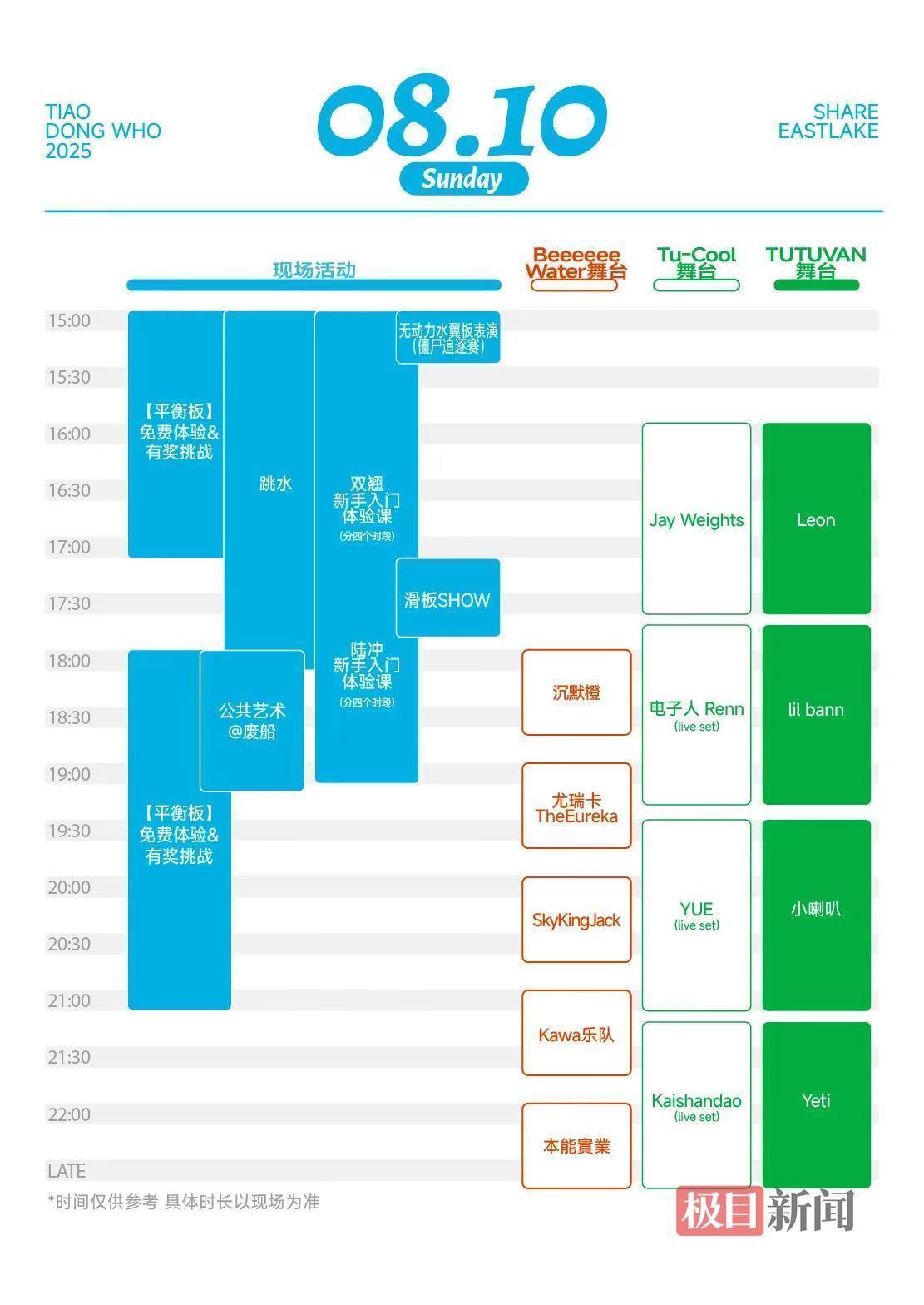 2025武汉“跳东湖”玩法再升级,从8月8日到8月10日(周五到周日),首次连办三天,37组音乐人,每天轮流带来6小时live。湖畔市集110余家摊位,好吃好喝好玩全覆盖。