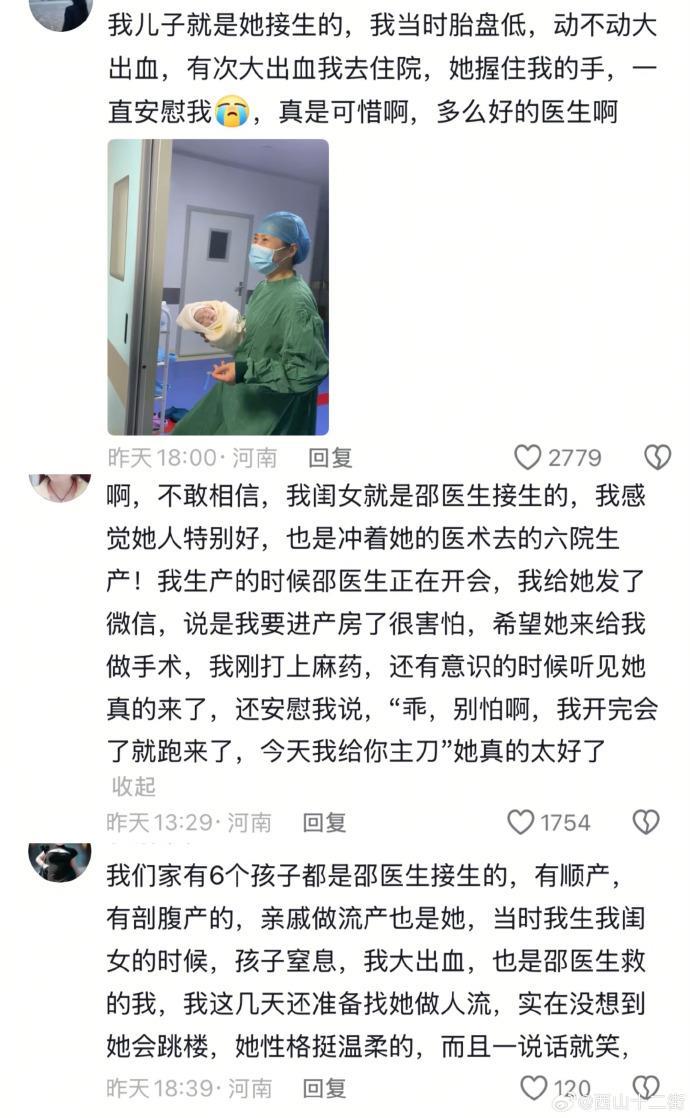 她去世的消息传出后,很多本地网友自发哀悼和怀念,不少宝妈都说,自己的孩子就是邵医生接生的,多亏了她才能顺利生产。邵医生还在自己主页公开了自己的手机号码,凌晨都会接患者的电话。