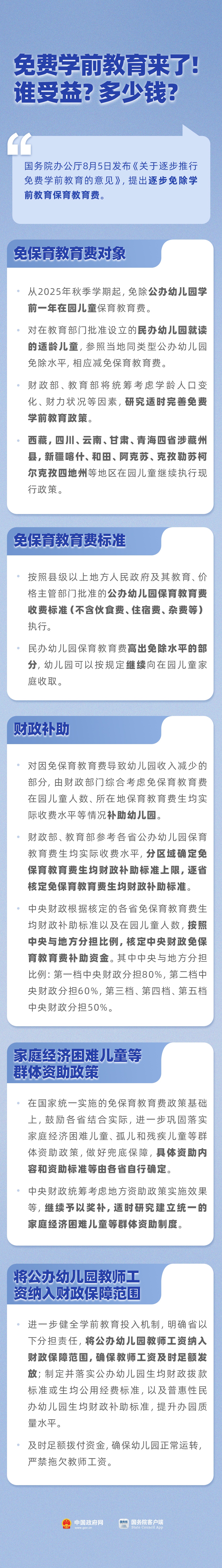 此前报道>>国办:免除公办幼儿园学前1年保教费