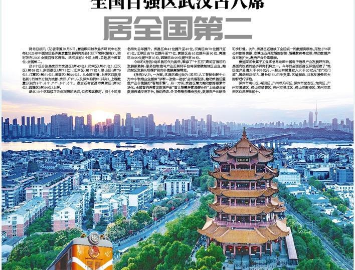 湖北日报讯 (记者李源)8月5日,赛迪顾问城市经济研究中心发布《2025年中国城区经济高质量发展研究报告》(以下简称《报告》),同时发布2025全国百强区榜单。武汉共有8个区上榜,总数居中部首位、全国第二。