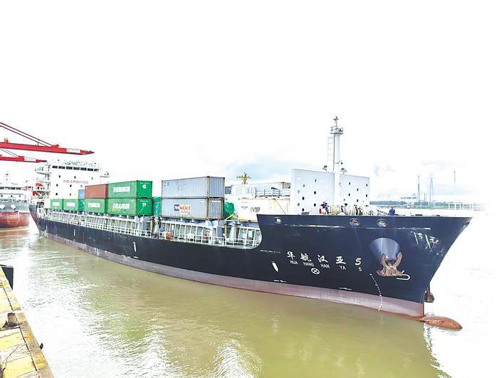 “华航汉亚5”轮停泊在阳逻港。 (受访单位供图)