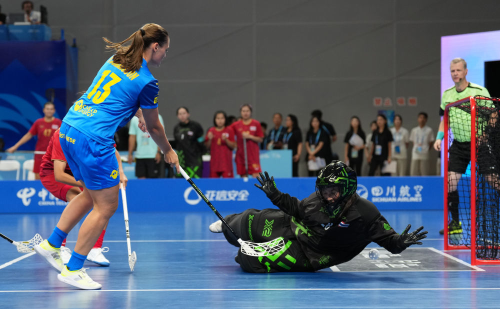 8月6日,成都世运会迎来首个比赛日。首场比赛为女子软式曲棍球A组预赛,在新都香城体育中心举行,由泰国队对阵瑞典队。