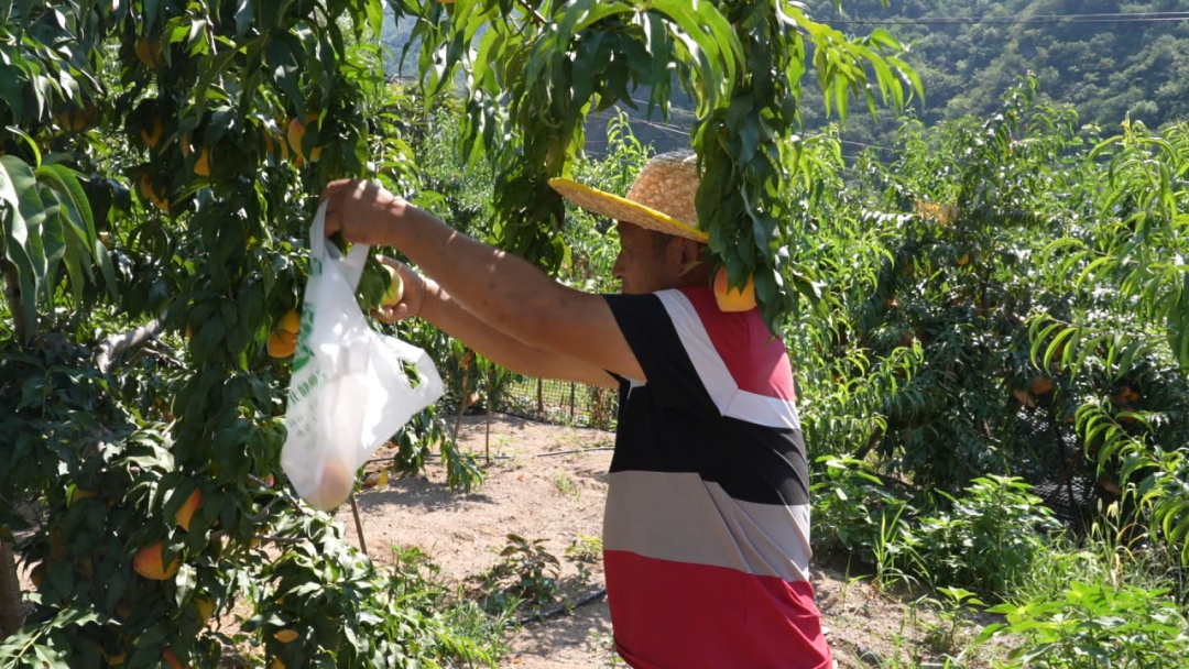 湖北静柳农业有限公司负责人冯秀华解释道:“套袋就是为了不打药,施农家肥,保证黄桃的品质和口感,还可以来田里观果品尝采摘。”